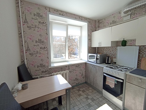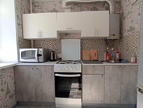 - Новым собственникам остаётся в подарок кухонный гарнитур, шкаф.