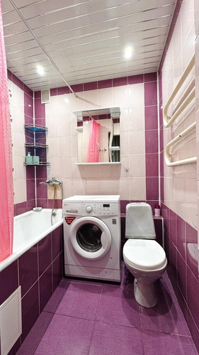 В подарок новым собственникам остаётся: кухонный гарнитур, газовая плита, кровать с подъемным механизмом, диван, стиральная машина.
