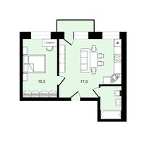 Квартира расположена на 5 этаже современного кирпичного дома 2017 года постройки. Здесь вас порадует не только комфортная жилая площадь в 30,9 кв. м, , а также балкон с видом на зеленый простор.