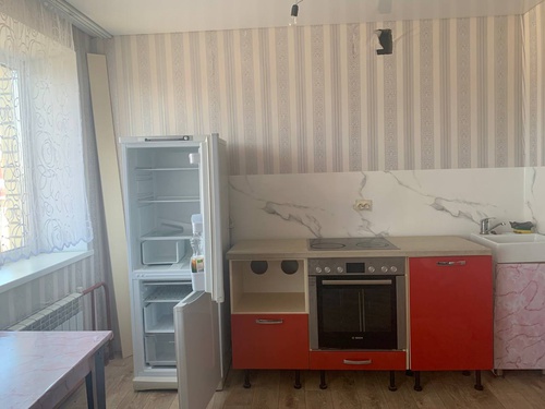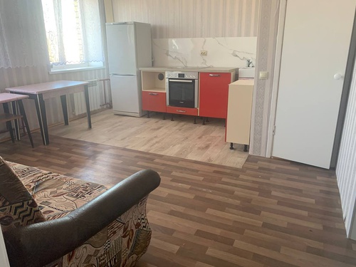 В квартире имеется электрическая плита, холодильник, диван и кровать.