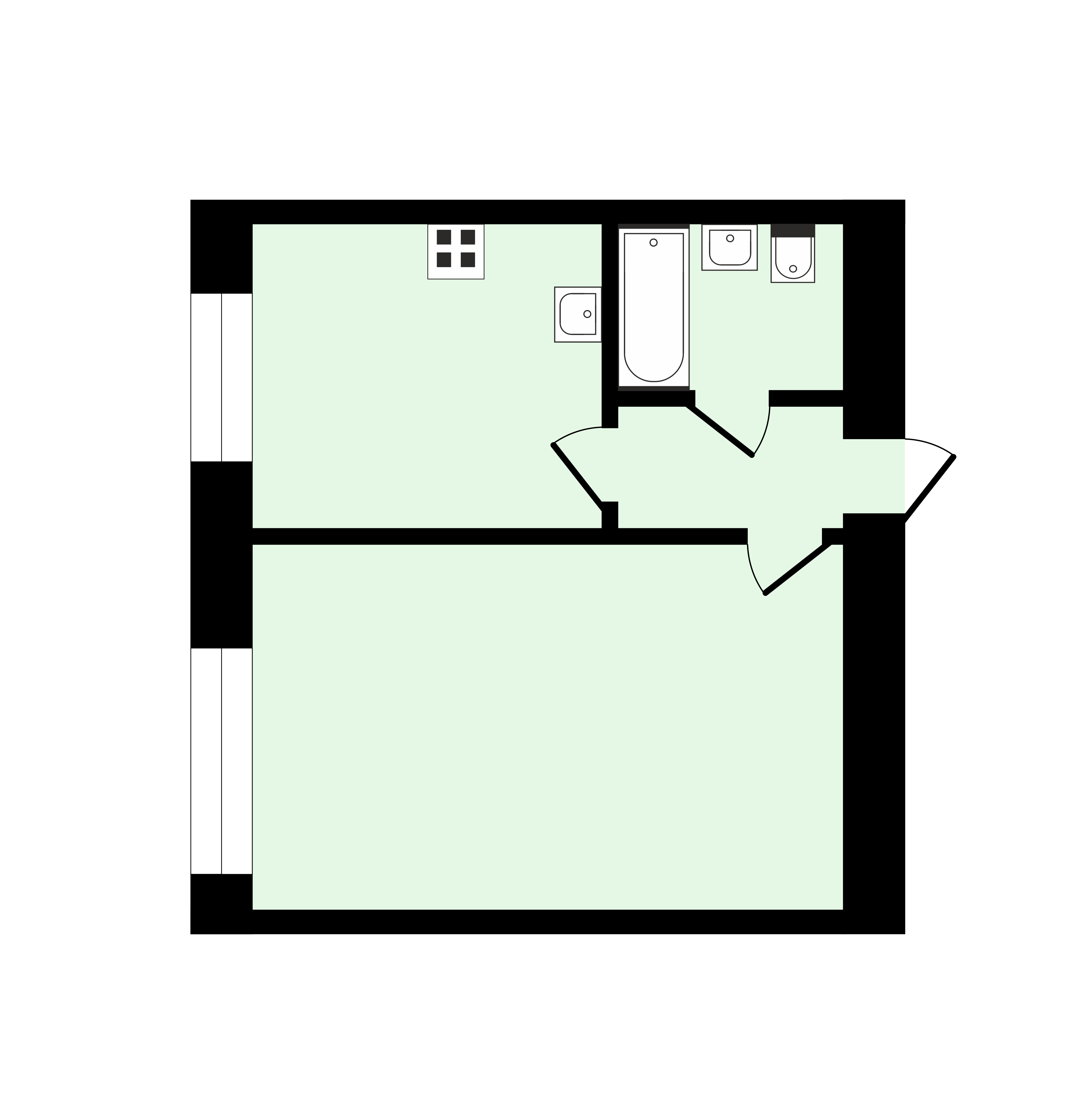 * Общая площадь квартиры — 32 кв. м, из которых 16 кв. м — жилая площадь, а 11,2 кв. м — кухня. Комнаты изолированы, что обеспечивает дополнительную приватность.