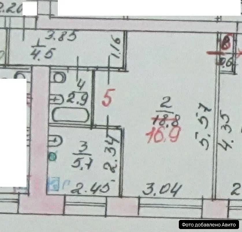 Жилая площадь составляет 16,9 кв. м, кухня — 5,7 кв. м.