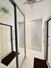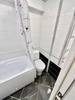 * Комфортная ванная комната. Совмещённый санузел со стильным дизайном, ванна, тропический душ и хороший полотенцесушитель.