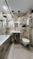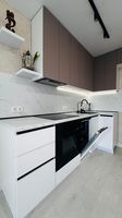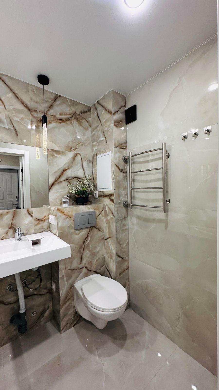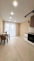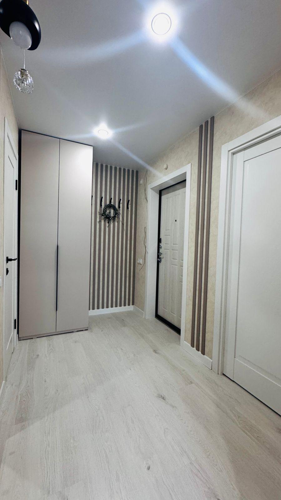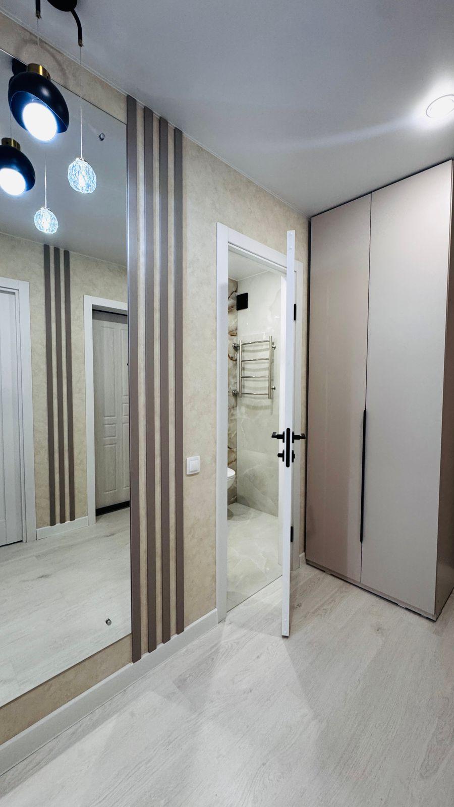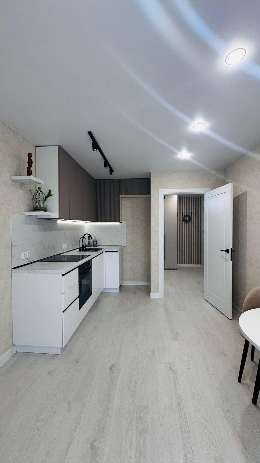 В квартире сделан качественный ремонт, установлен современный кухонный гарнитур, посудомоечная машинка, варочная панель, духовой шкаф, вытяжка, обеденная зона, шкаф в прихожей, раковина в ванной комнате.