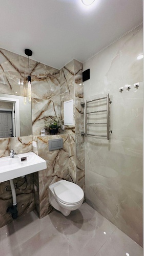 В санузле сделана инсталляция, сделан вывод для стиральной машинки.