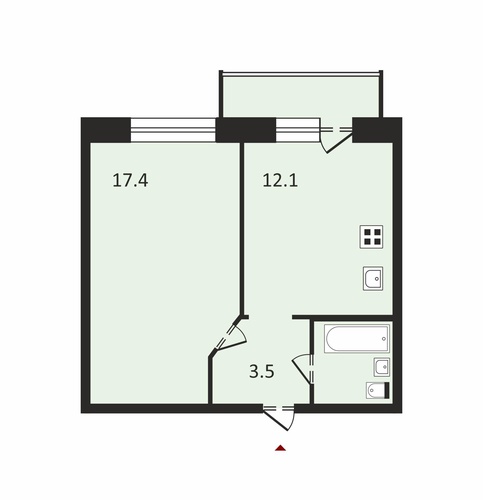 Изолированная жилая комната площадью 17,4 кв. м позволит вам создать уютное пространство для отдыха или работы.