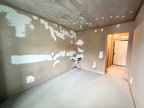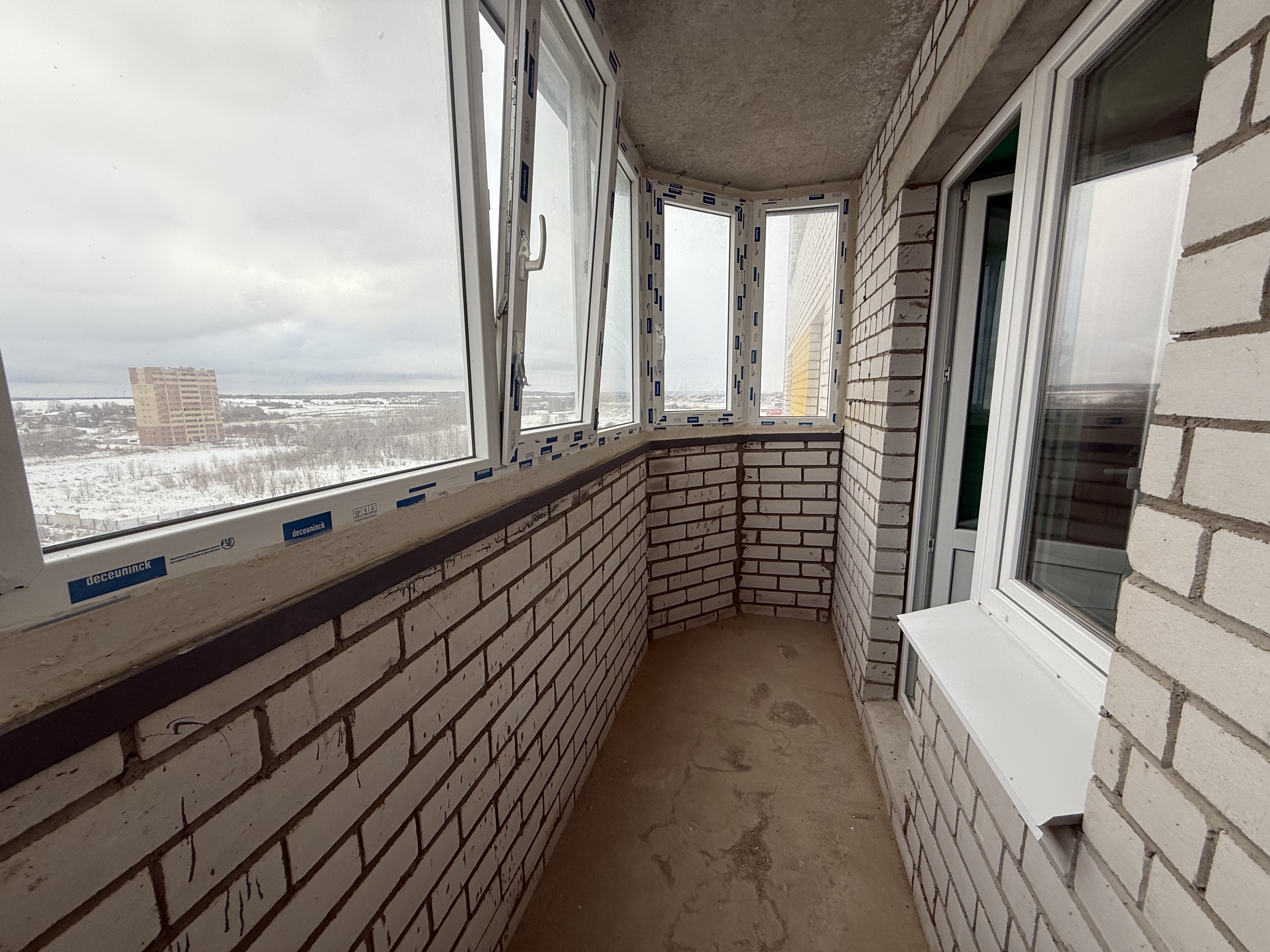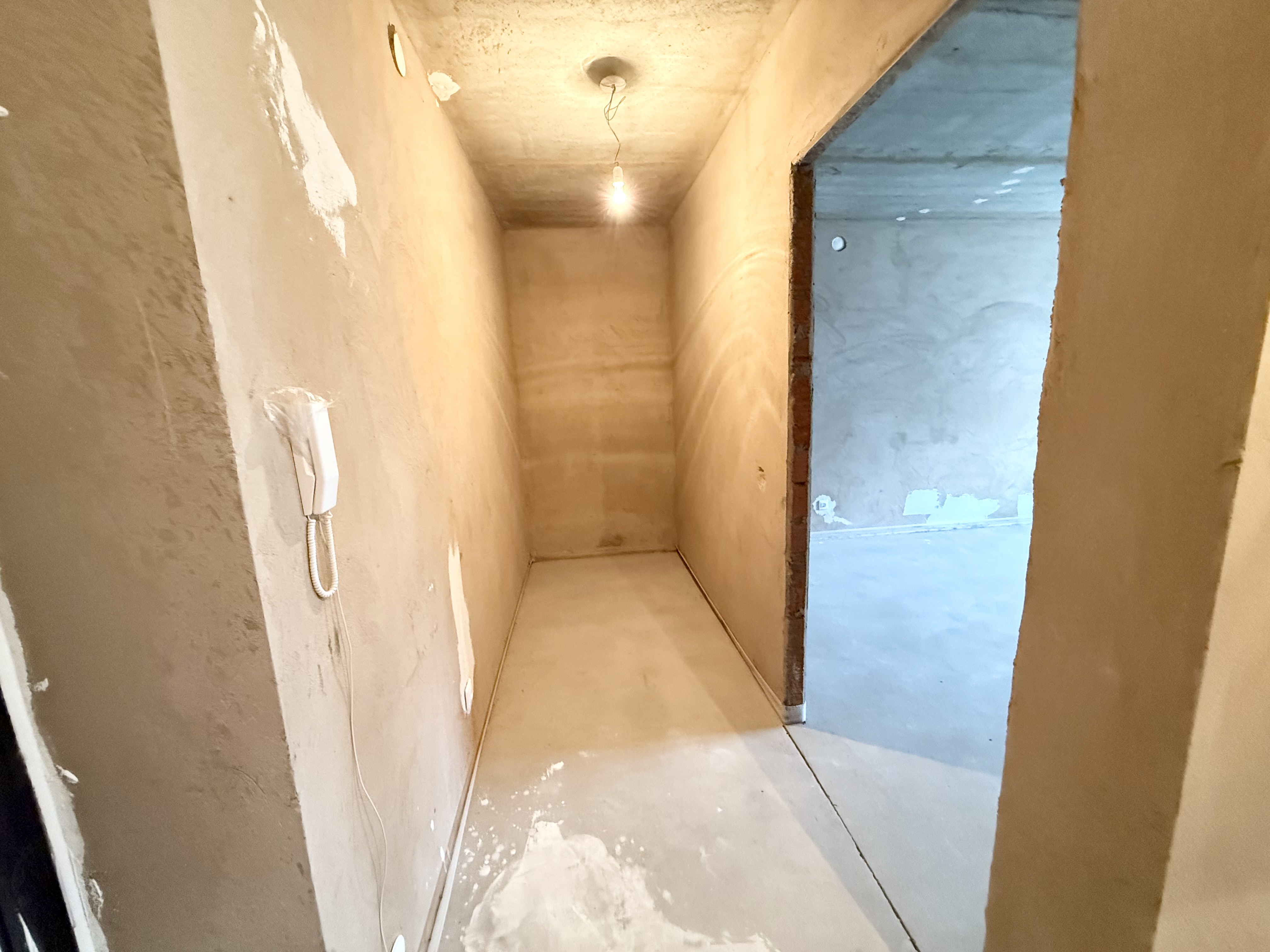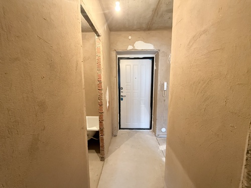 Эргономичная прихожая с вместительной гардеробной и большая, почти квадратная комната с широким окном.