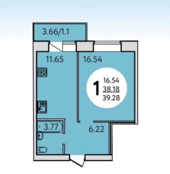 Квартира расположена на 8 этаже, общей площадью 38,1 кв.м.