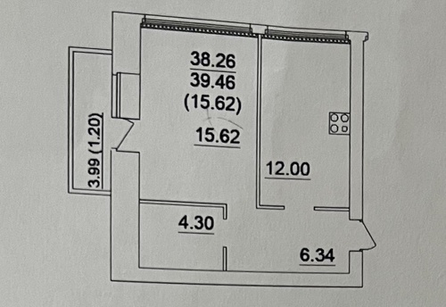Удобная планировка с большой кухней 12 кв.м., комната 15,5 кв.м., просторный балкон 4 кв.м.