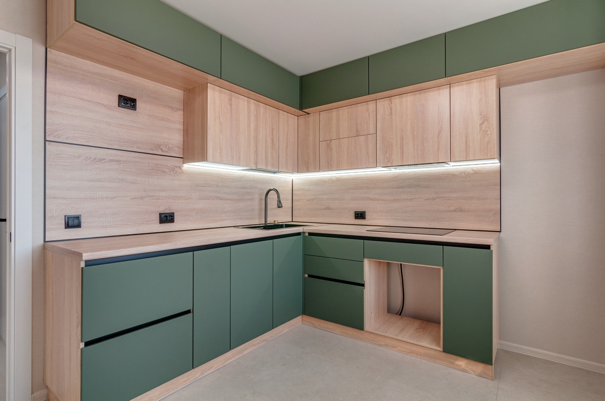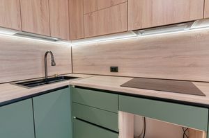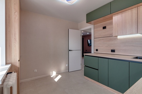 - определено место под посудомоечную машину, духовку и холодильник.