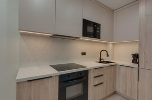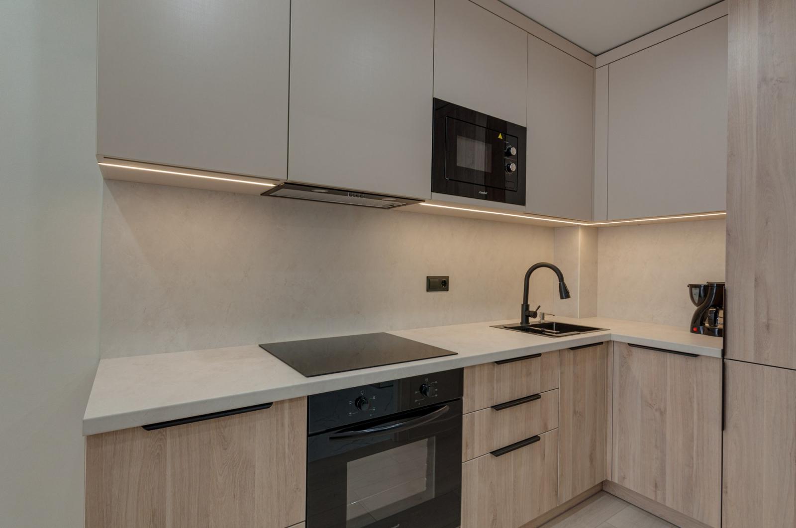 — дорогой кухонный гарнитур со встроенной бытовой техникой (посудомоечная машина, духовой шкаф, варочная панель, холодильник и др.)