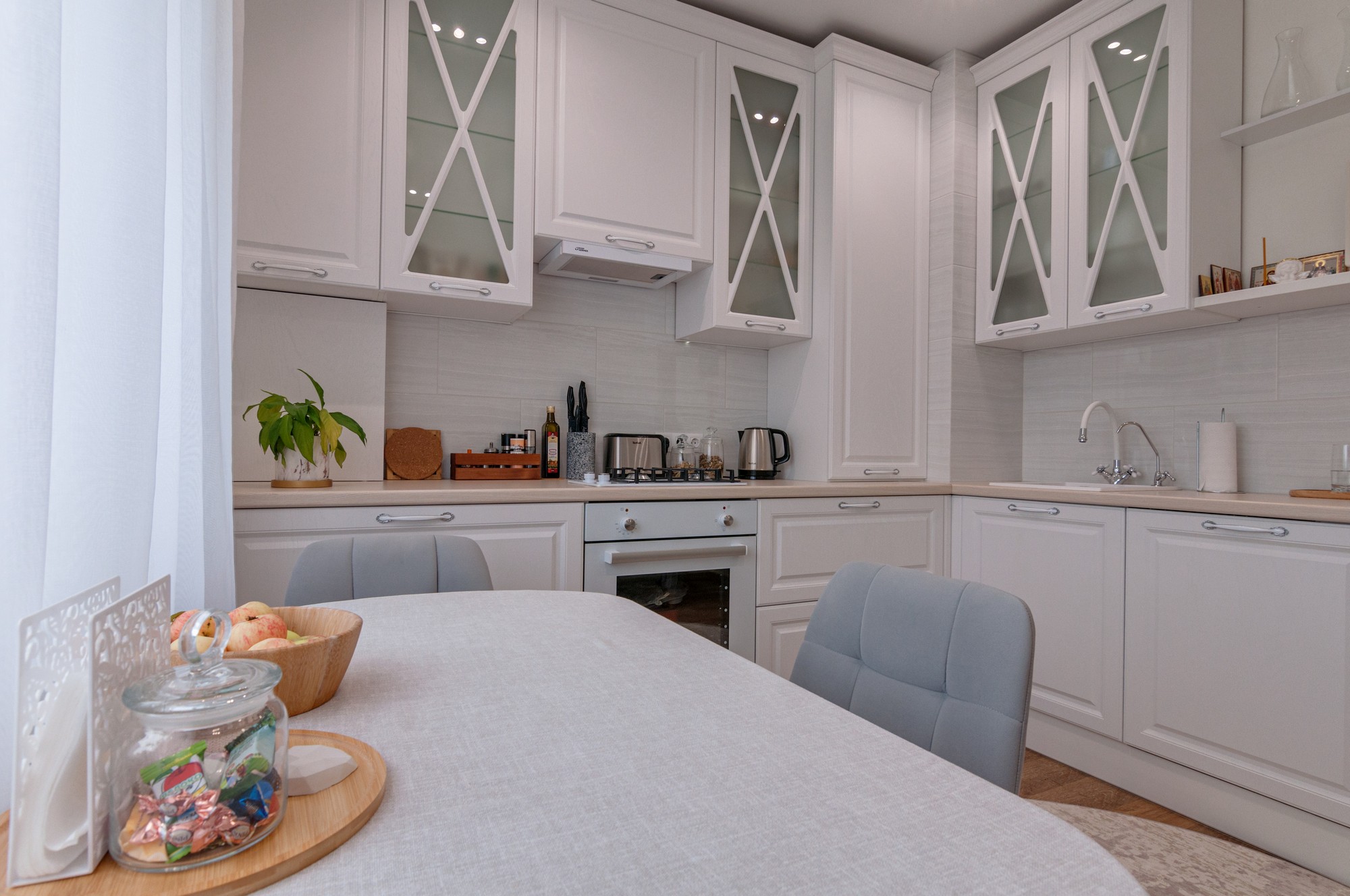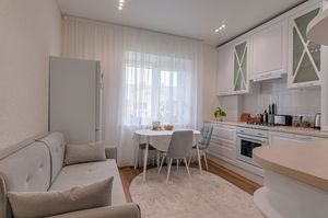 - остается вся встроенная мебель (кухня, гардеробная) и техника (посудомойка, варочная панель, духовой шкаф), остальная мебель по договоренности.