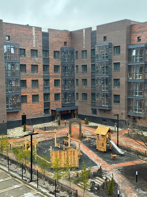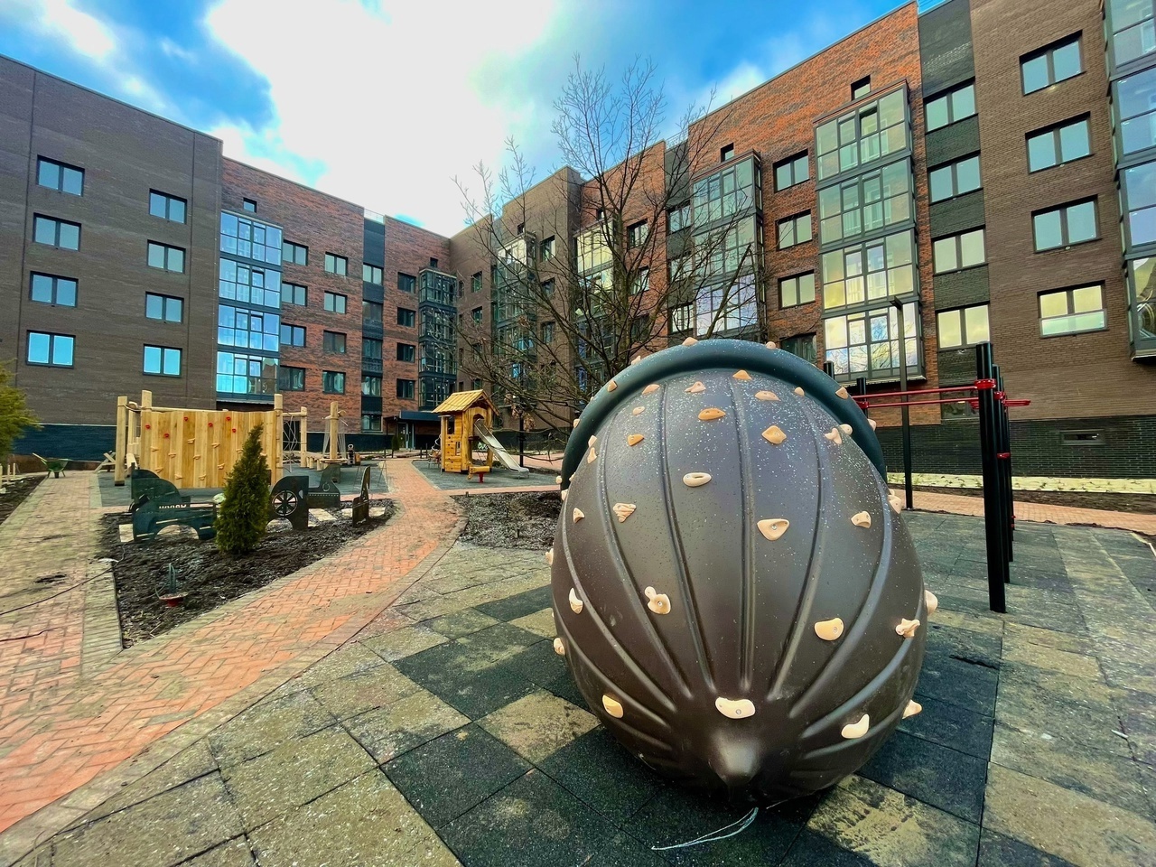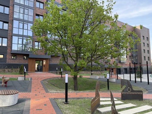 Спроектирован приватный двор, здесь не шумно, вы можете не бояться отпустить детей гулять во двор. Двор без машин, во дворе, полностью свободных от автомобилей дети могут свободно передвигаться по территории.