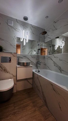 В санузле сделана инсталляция, сделан вывод для стиральной машинки.