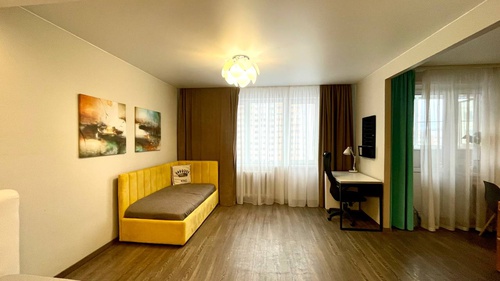 Уютная квартира с евроремонтом и высокими потолками (2,8 м). На просторной лоджии можно организовать зону отдыха. Дом с наземной парковкой и закрытой территорией обеспечивает безопасность и комфорт жильцов.