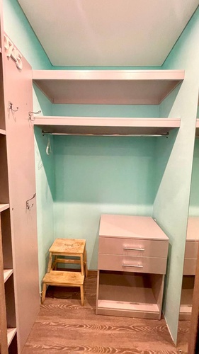 * В прихожей есть гардеробная, что помогает поддерживать порядок в квартире и избавляет от необходимости в дополнительных шкафах и комодах.