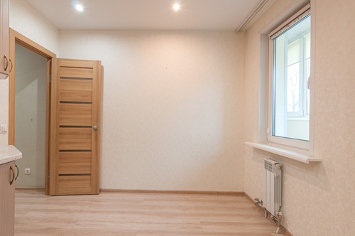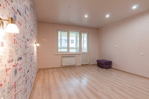 В квартире современный ремонт. В прихожей, в комнатах и частично на кухне ламинат, натяжные потолки, а так же обои в спокойных тонах.