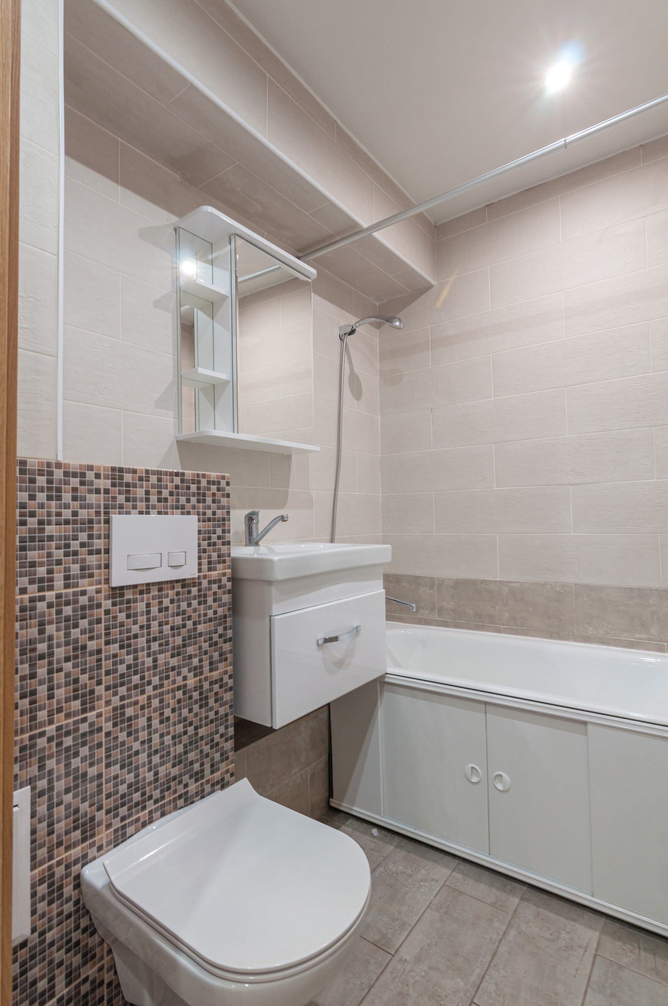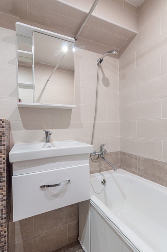 Сан узел совмещен в кафеле с установленной инсталляцией.