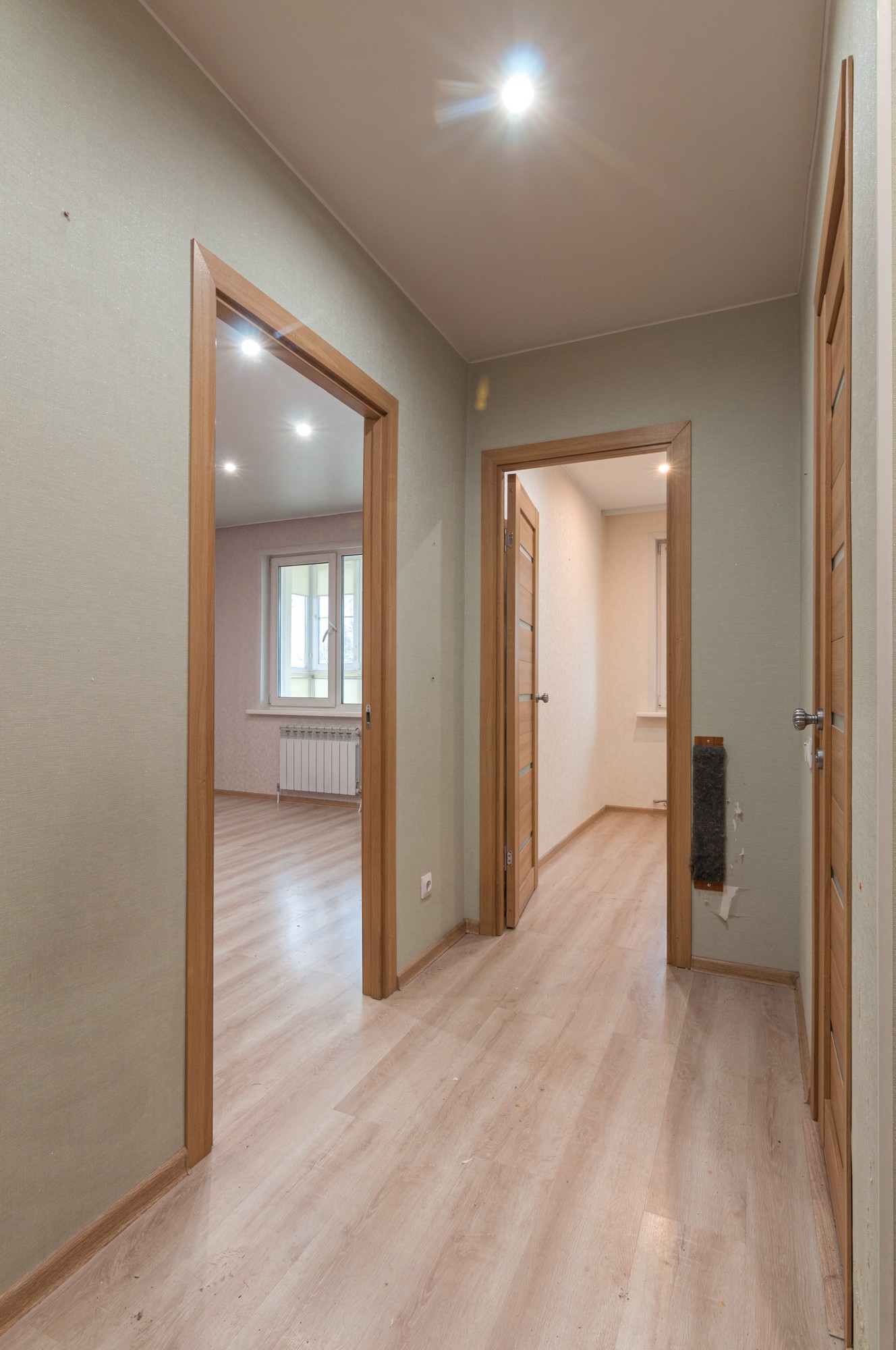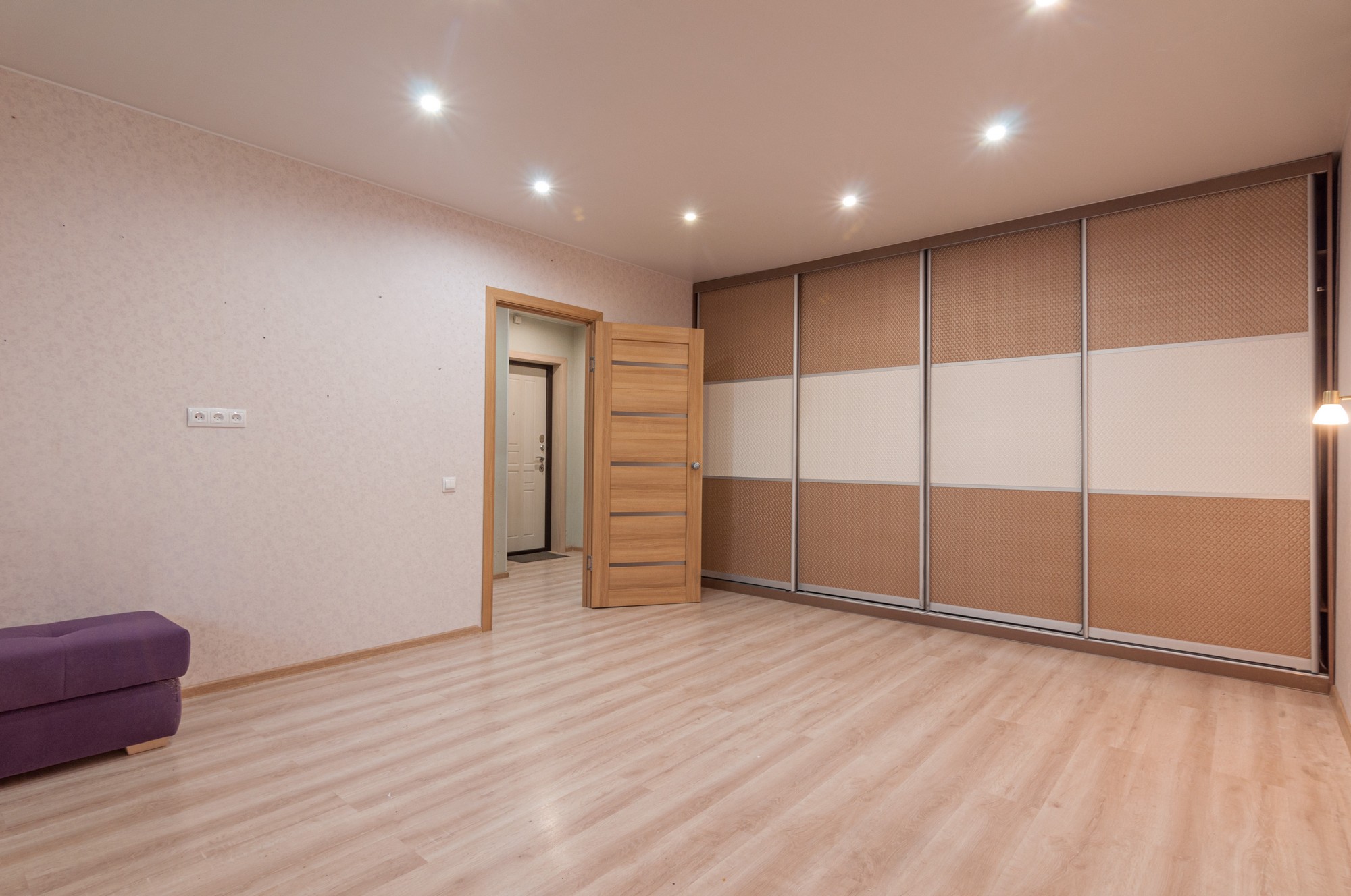 Просторная прихожая с вместительным шкафом купе.