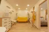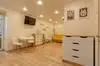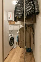 Кухня – гостиная оборудована встроенной мебелью и техникой, которая при продаже останется новым владельцам квартиры в подарок