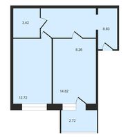Удобная современная планировка: большая объединённая кухня-гостиная и отдельная спальня.