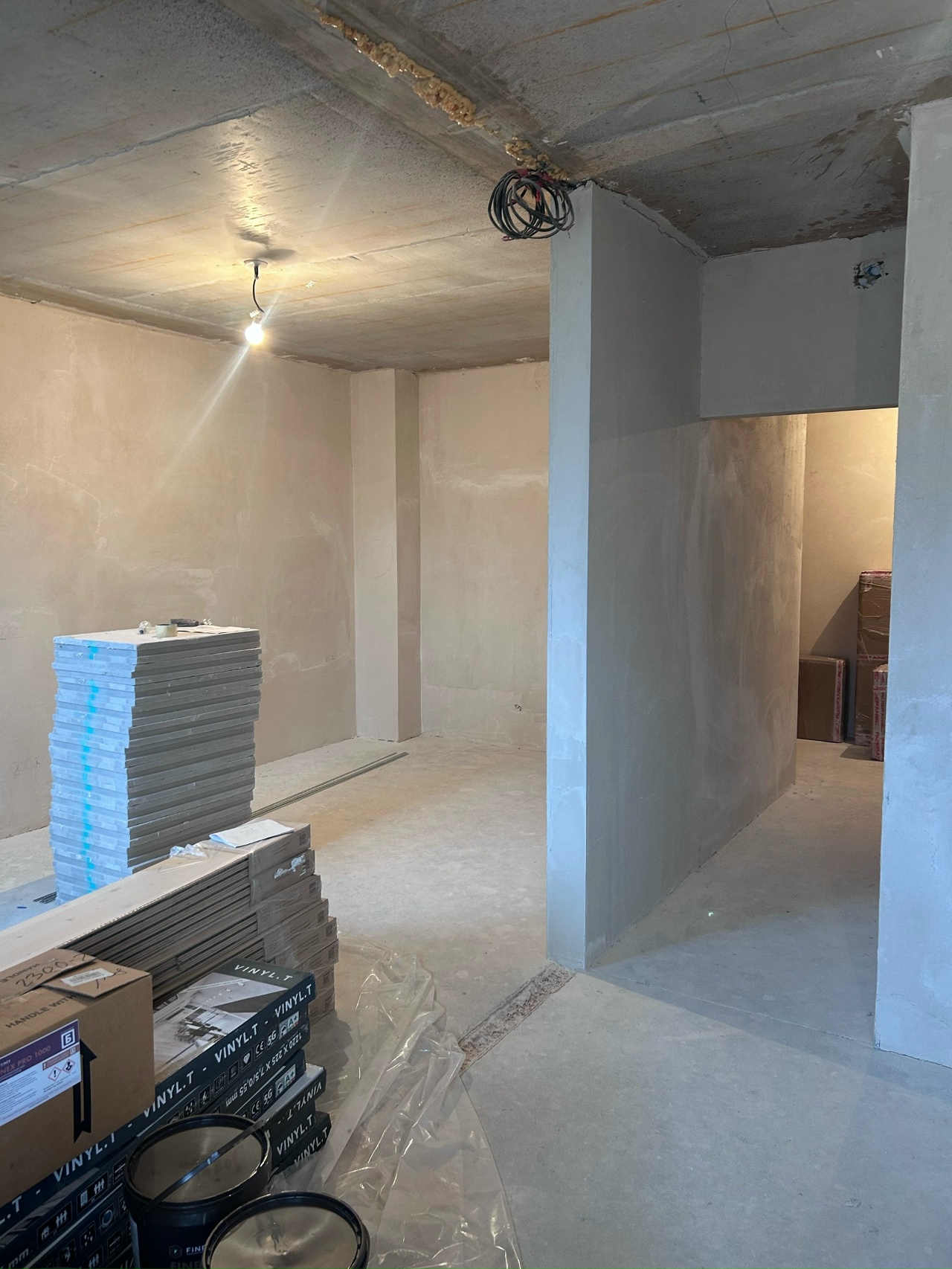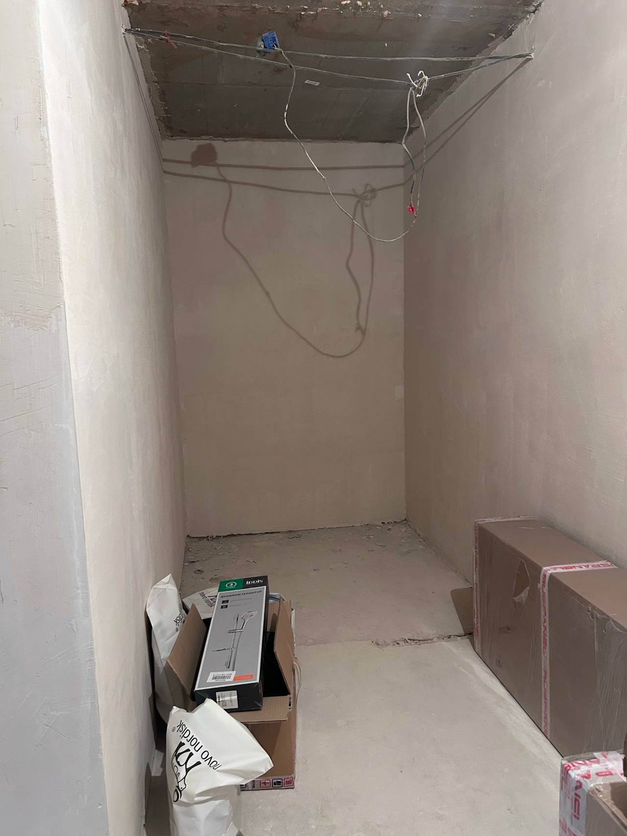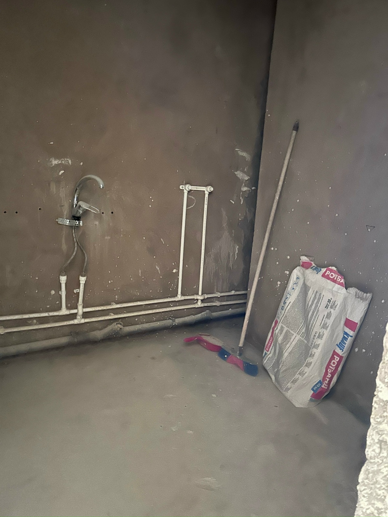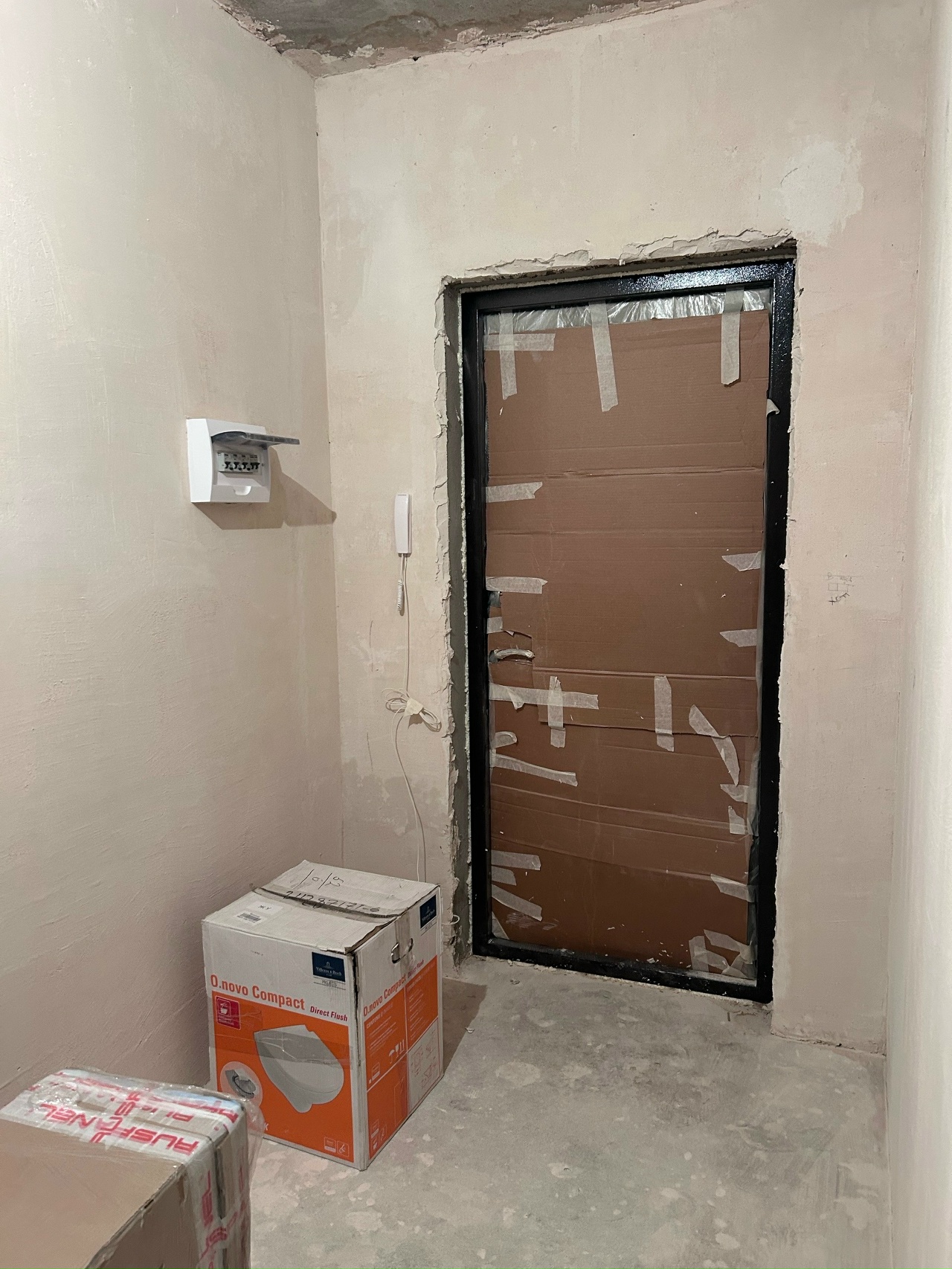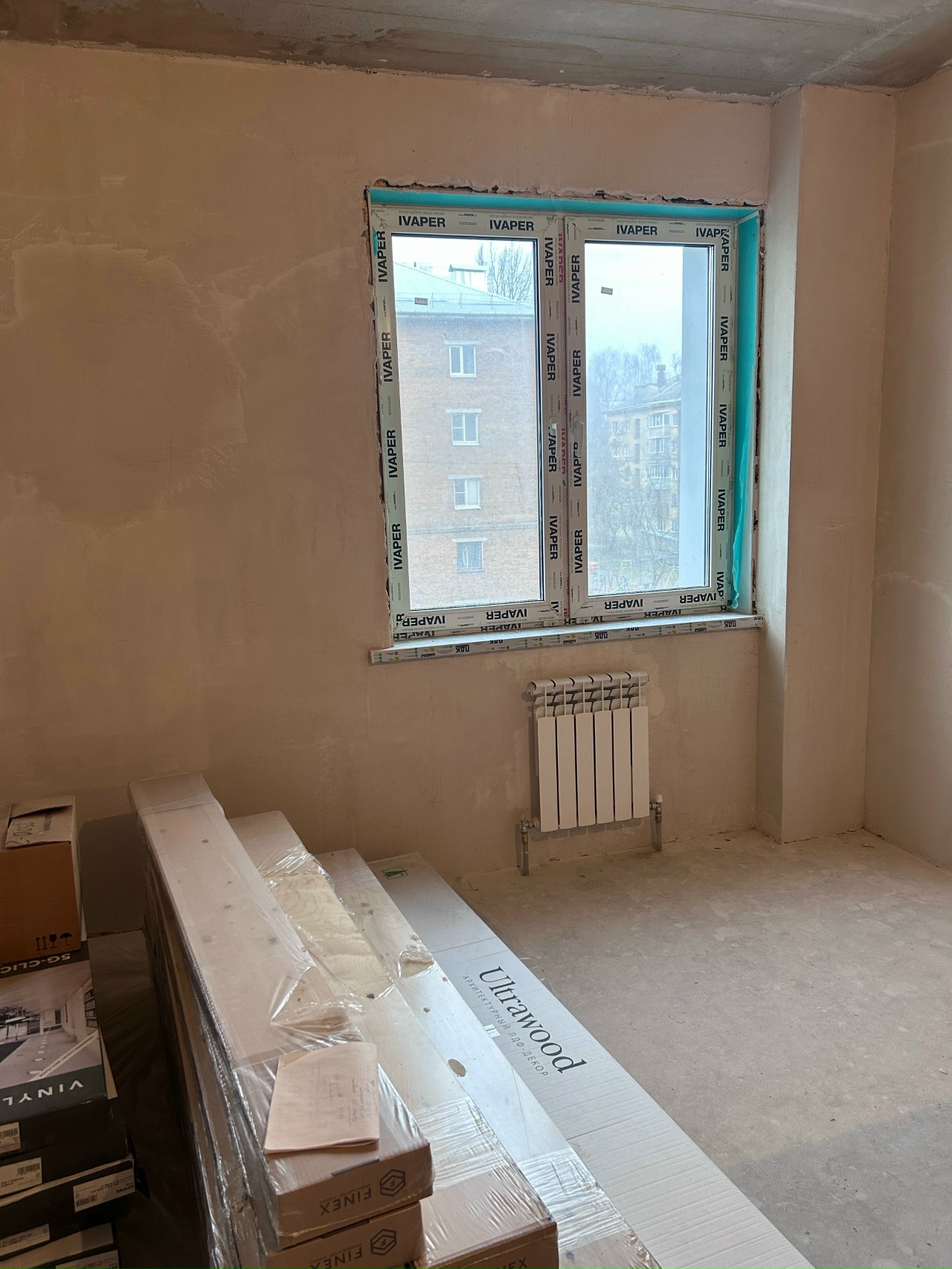 Квартира без отделки, но стены отшпаклеваны.
