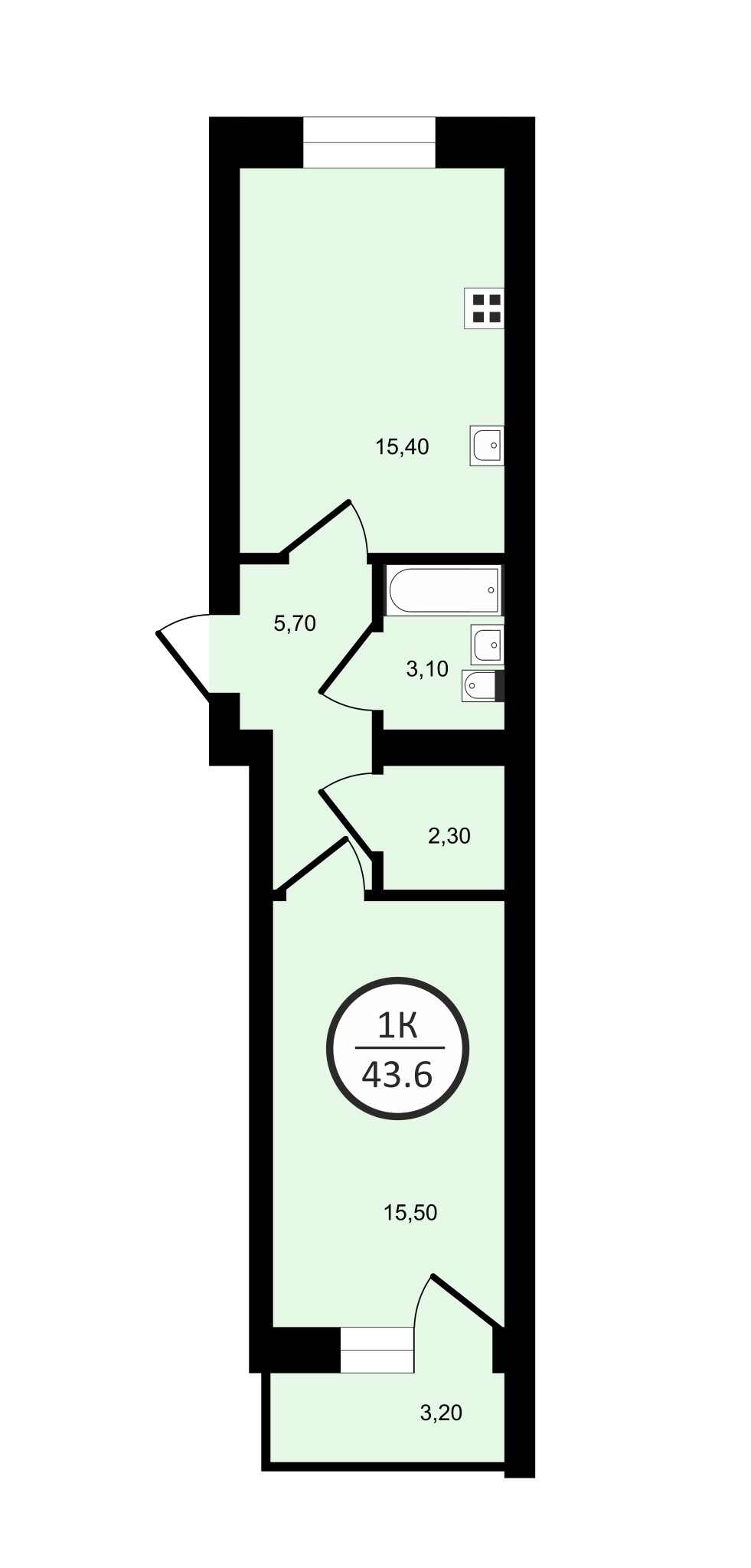 -Планировка данной квартиры - на две стороны, комната и кухня располагаются в разных сторонах и имеют правильную прямоугольную форму,