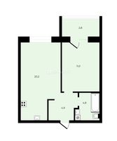 В квартире удобная планировка: кухня-гостиная, спальня с выходом на панорамную лоджию, ниша под гардеробную в прихожей. Высота потолков 2,7 м.