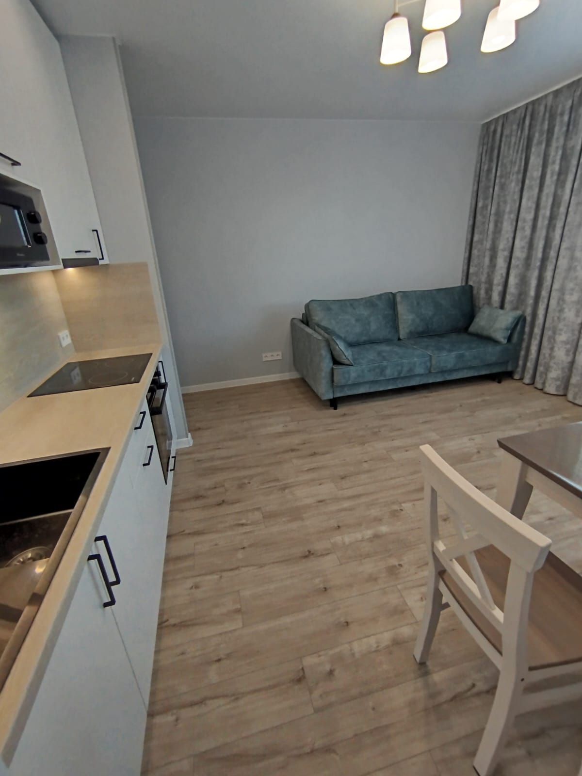 Дизайнерский ремонт и просторные помещения (общая площадь 43,8 кв. м) создают идеальные условия для комфортного проживания. Высокие потолки (2,71 м) добавляют воздуха и свободы, а окна, выходящие во двор, обеспечивают отличное естественное освещение, тишину и прекрасные виды на реку и зону благоустройства.