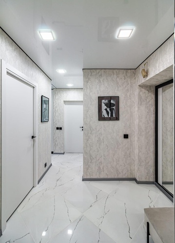 - Пол – кварцвинил, стены – обои горячего тиснения в светлых тонах.