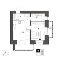 Общая площадь квартиры составляет 47,1 кв. м, из которых 11,6 кв м с застекленным балконом,