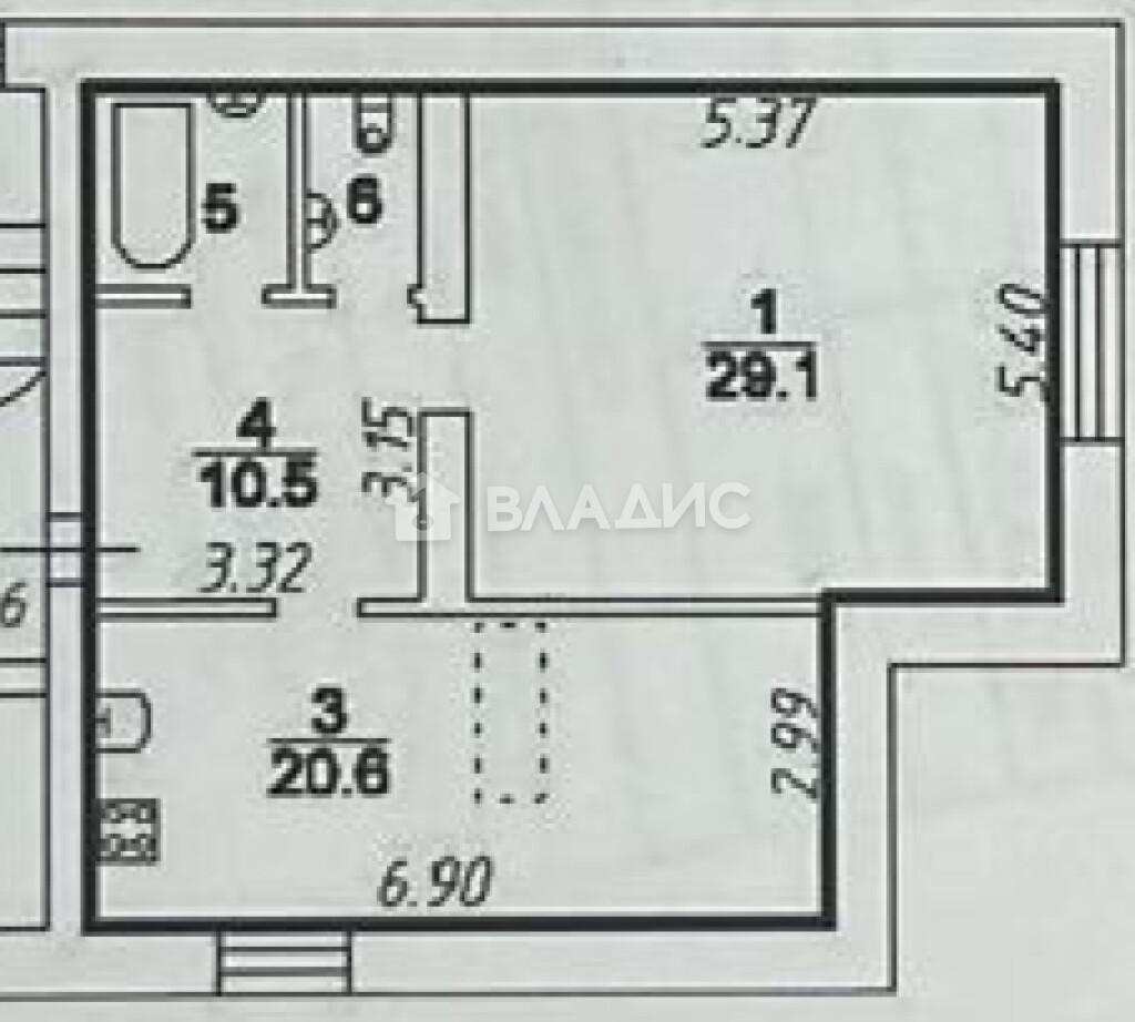 Общая площадь 66,9 кв. м: 29,1 кв. м — жилая площадь, 20,6 кв. м кухня.