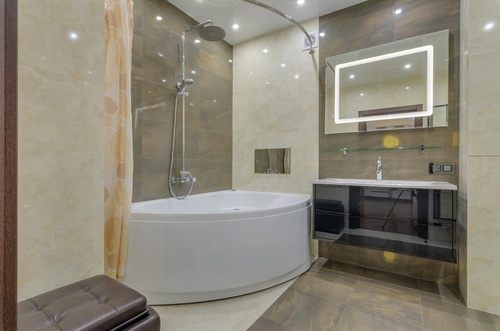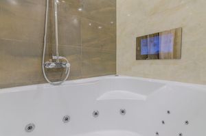 В санузле установлена ванна-джакузи, водоотталкивающий телевизор, встроенный в стену, скрытый водонагреватель на 80 литров.