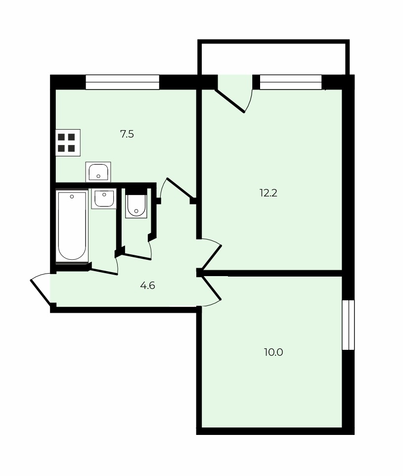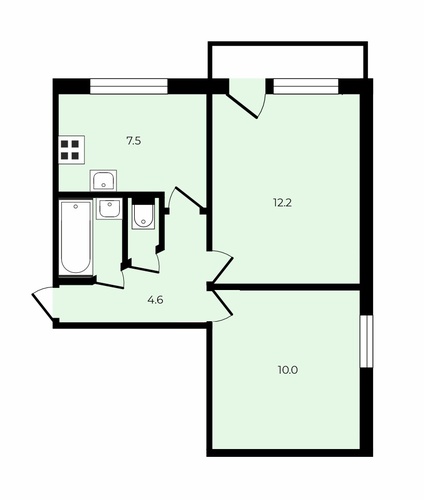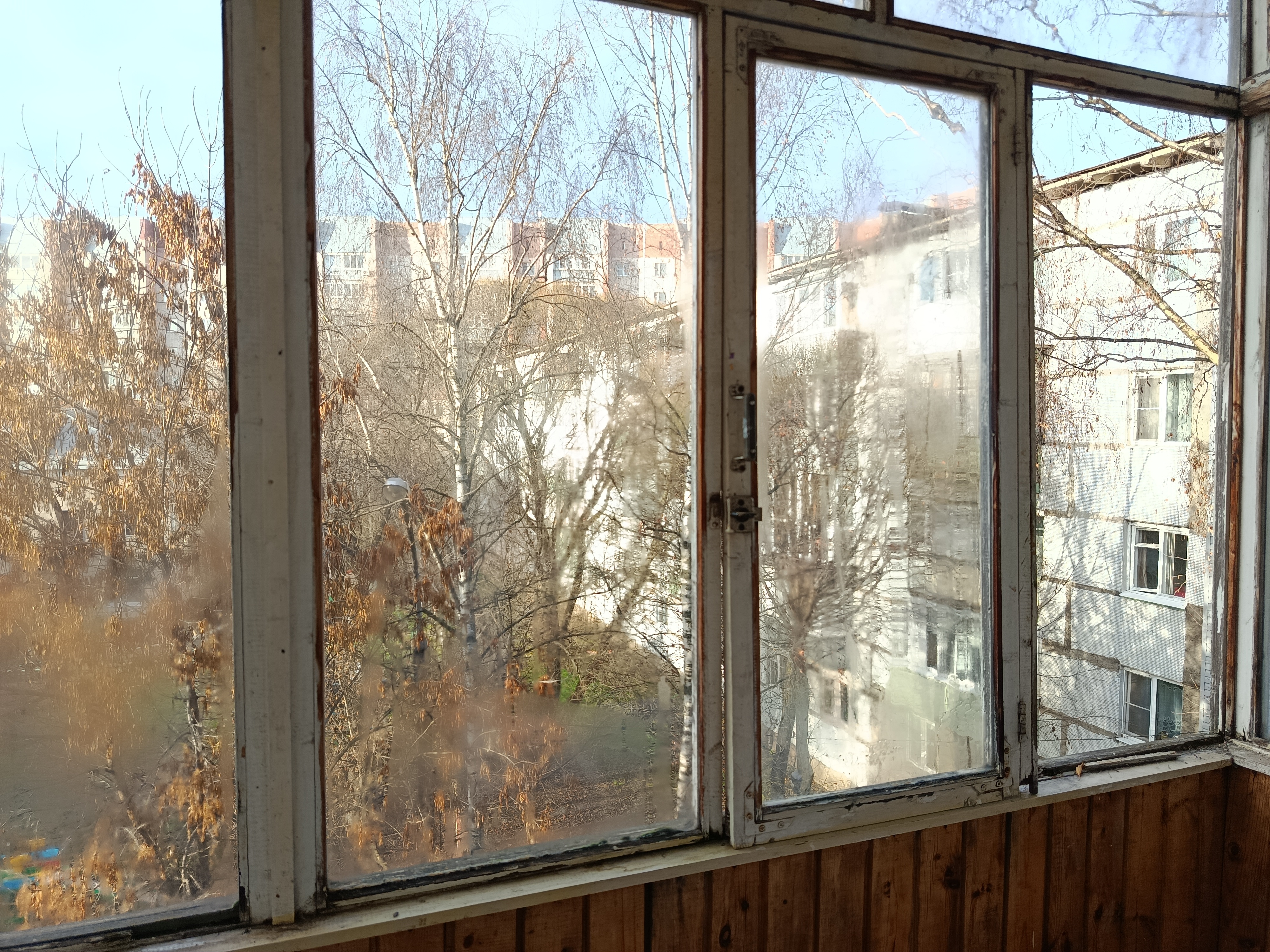 окна заменены на пластик (выходят во двор), на полу - линолеум,