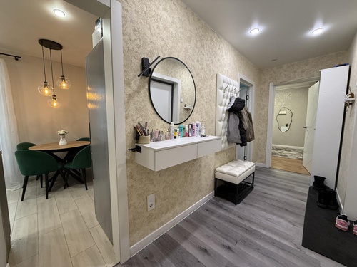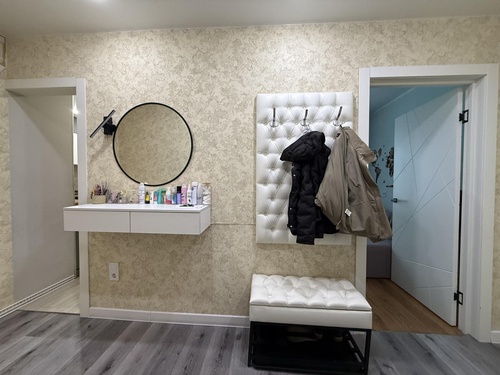 В подарок нам собственником остается кухонный гарнитур с варочной поверхностью и вытяжкой. Прихожая.
