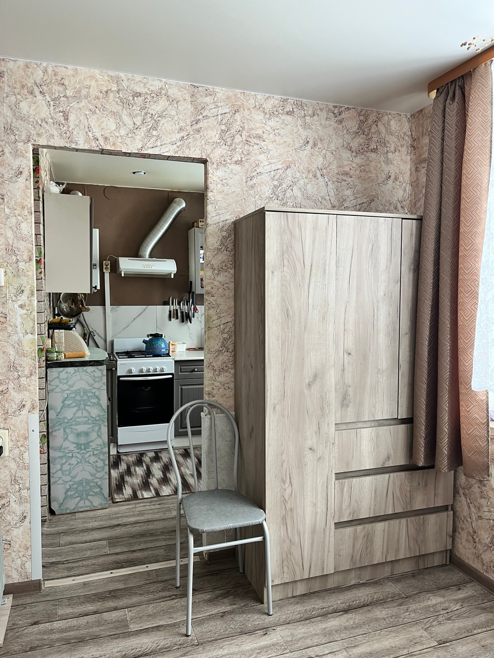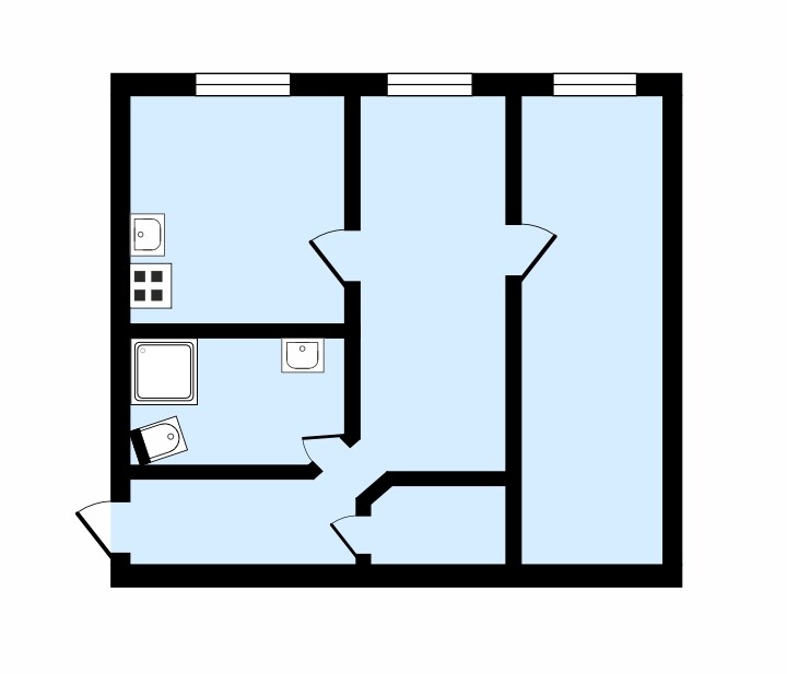 Квартира в кирпичном доме, на 1 этаже. Окна выходят во двор. Комнаты смежные, но при желании есть возможность изолировать. Есть темная комната - гардеробная, очень удобно для хранения вещей.
