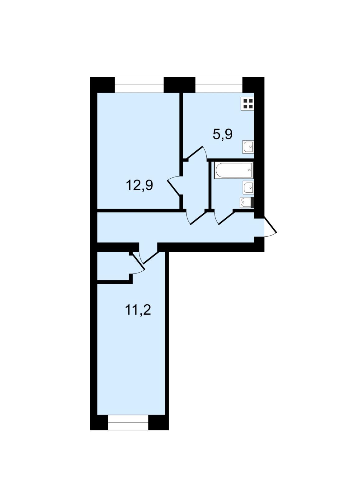 Квартира находится на первом этаже пятиэтажного кирпичного дома, построенного в 1966 году. Общая площадь квартиры составляет 42,5 кв. м, а жилая – 24,1 кв. м, что обеспечивает комфортное пространство для жизни. Удобная изолированная планировка включает две комнаты (12,9 и 11,2 кв. м), что позволяет организовать пространство по своему усмотрению.