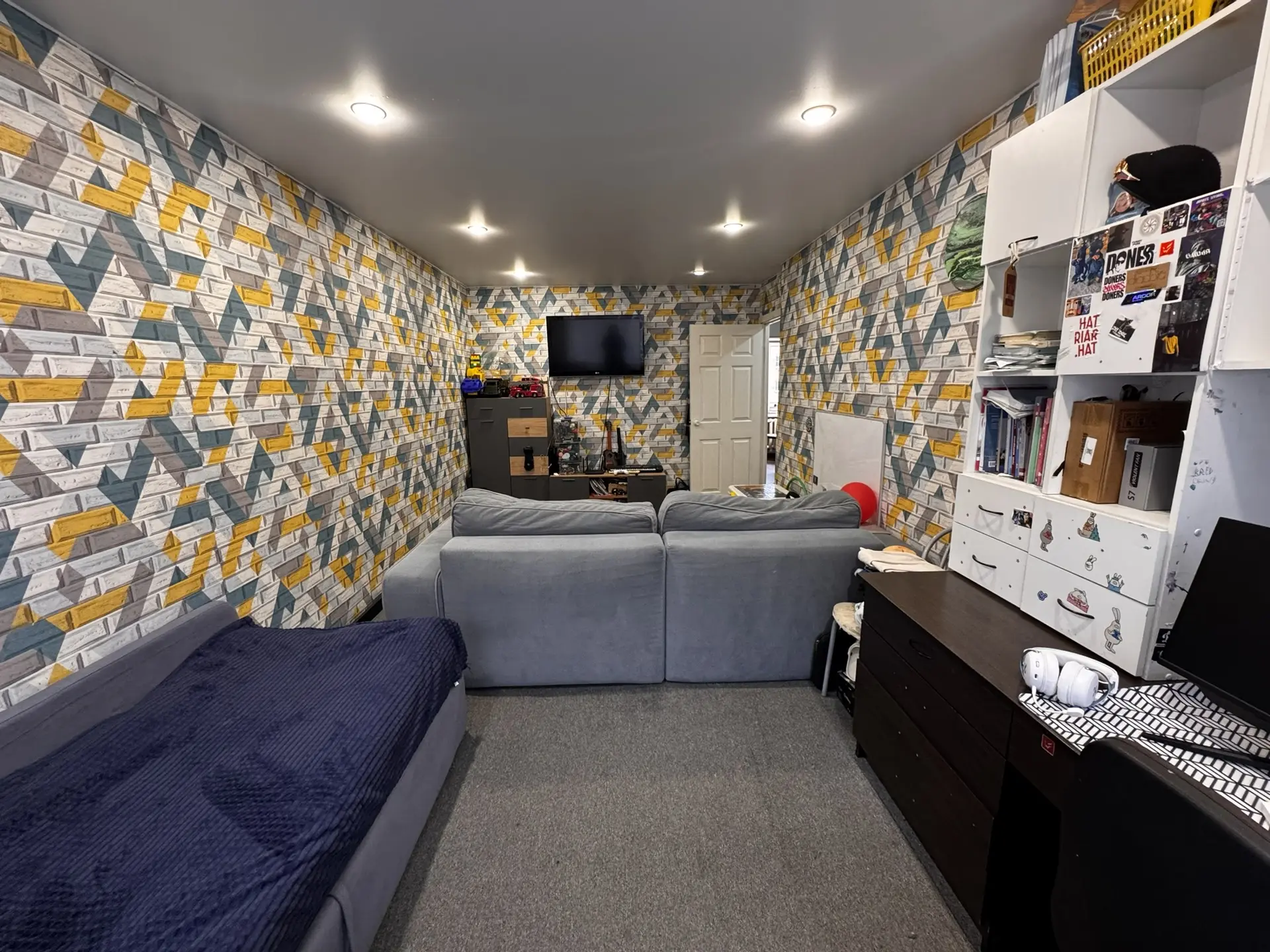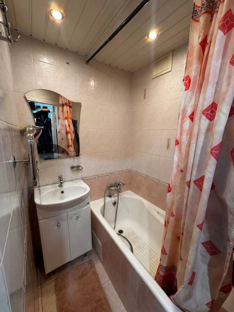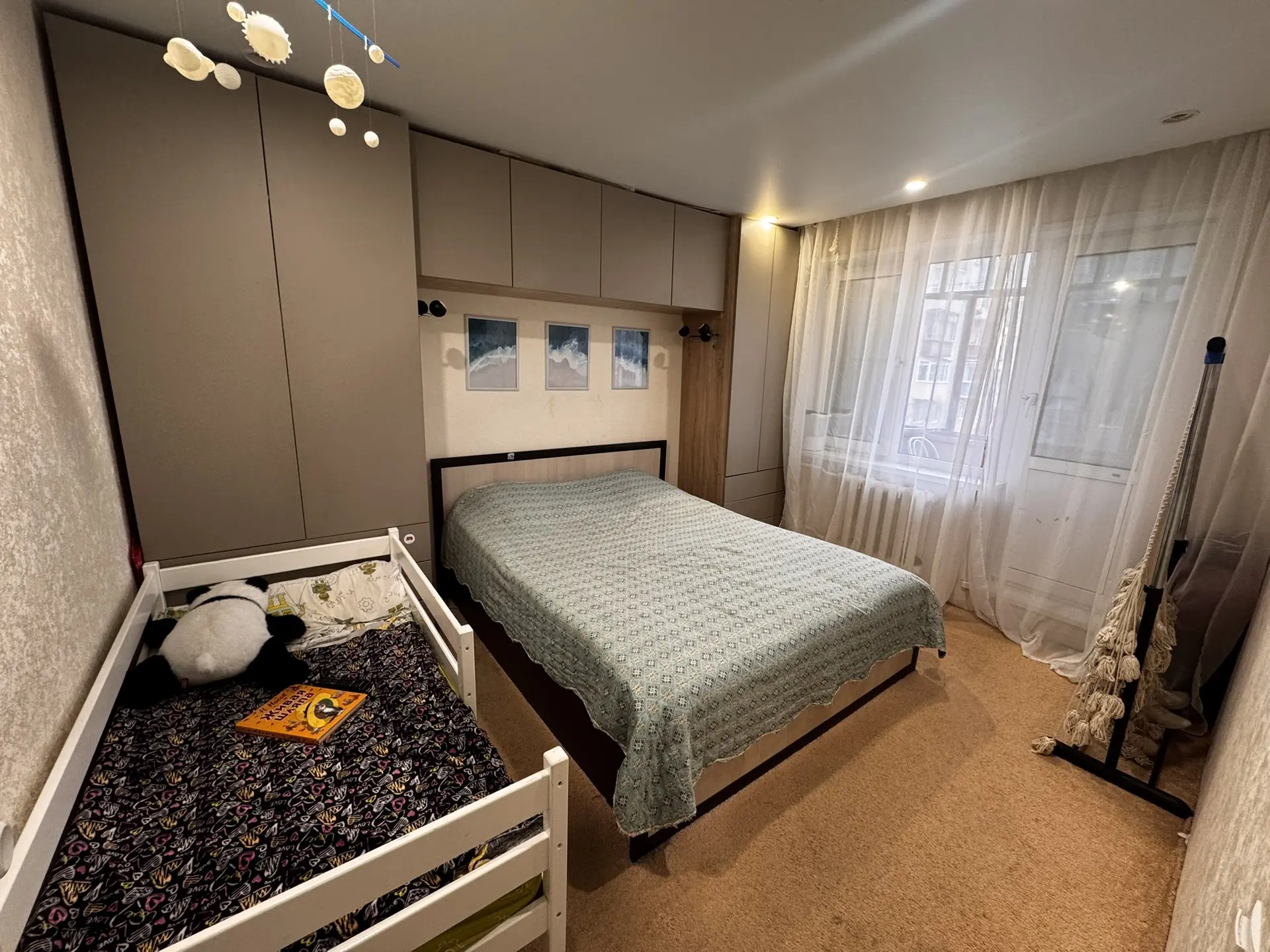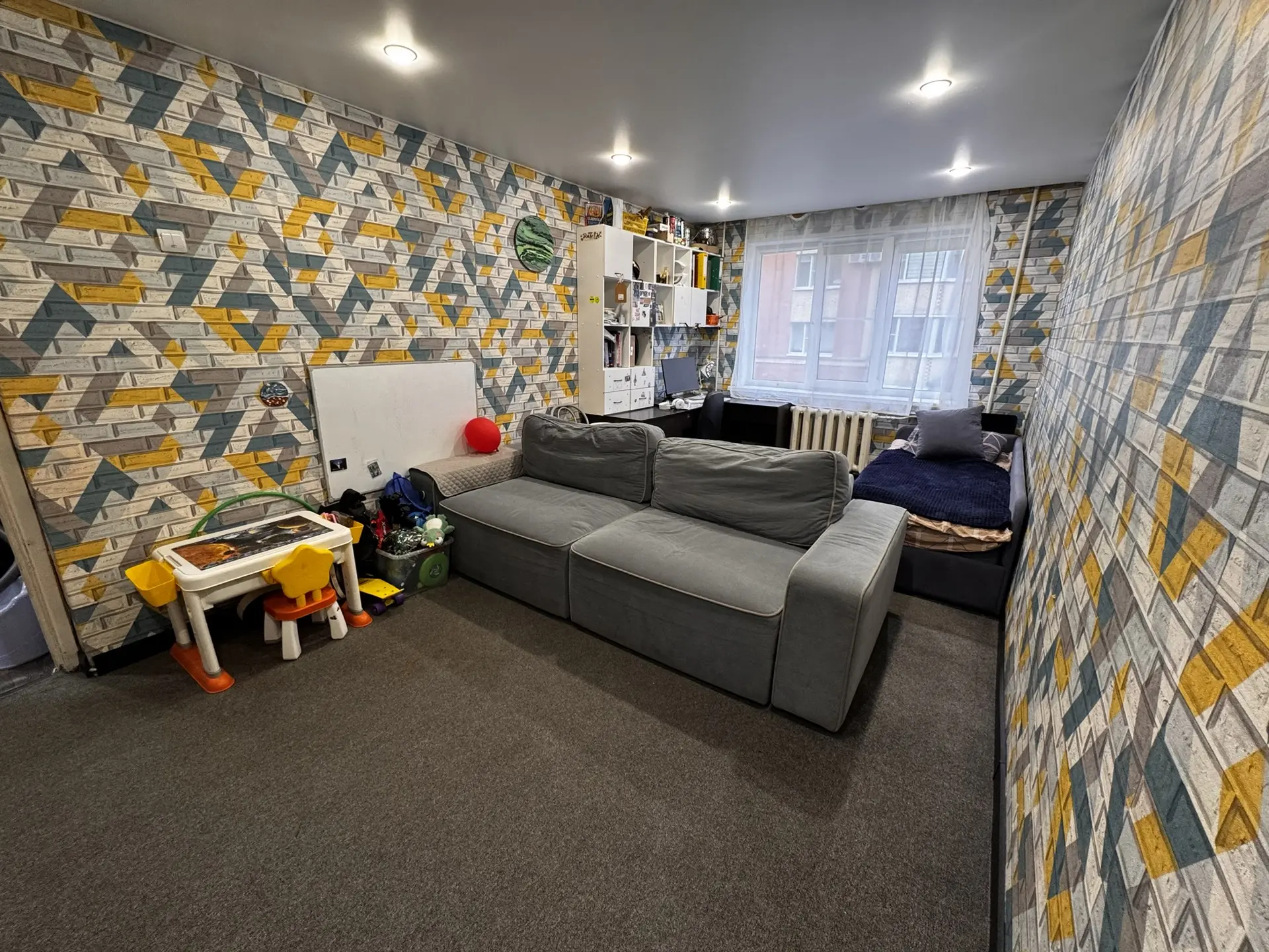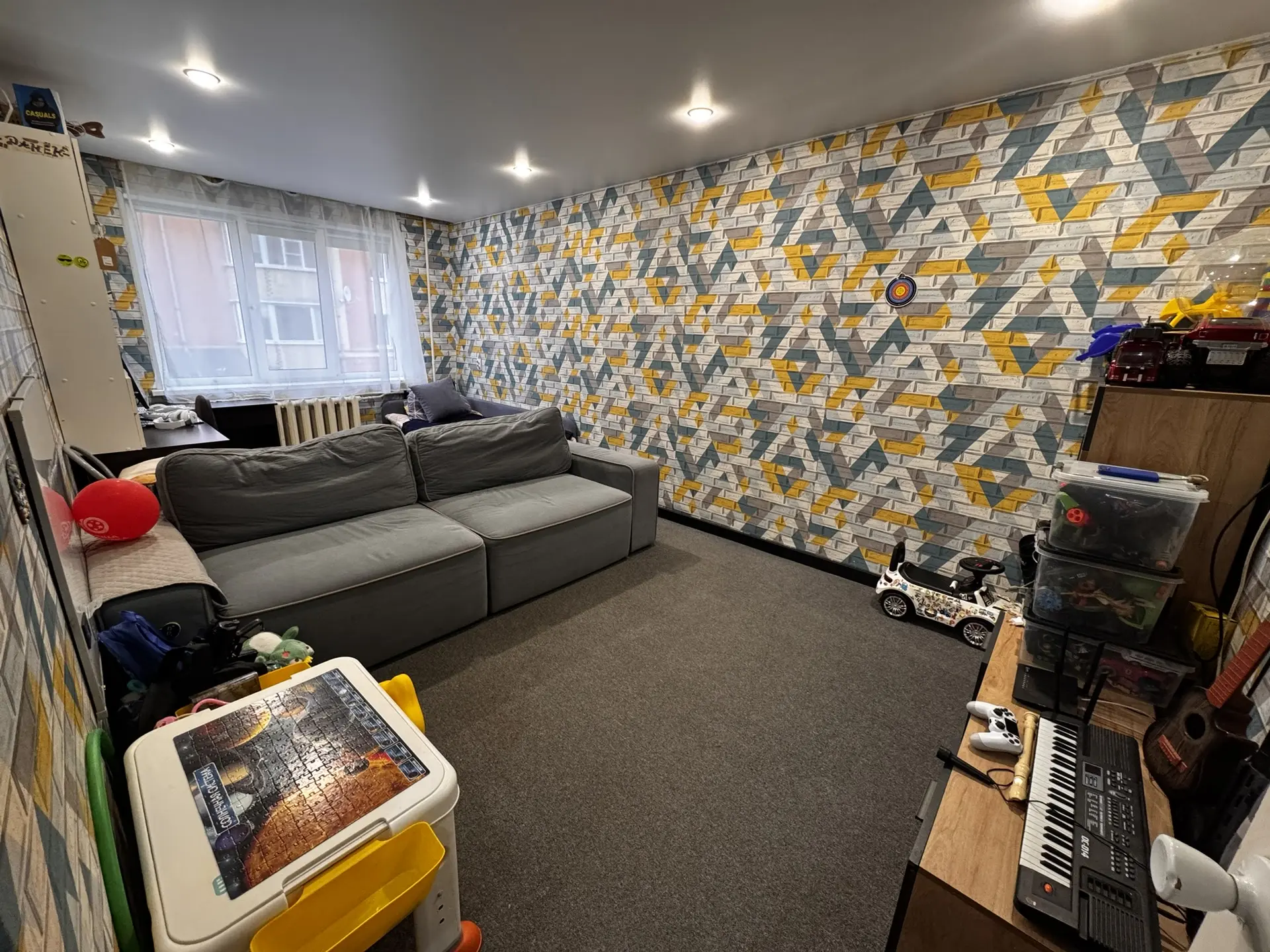 Во всех комнатах натяжные потолки, на полу качественный линолеум. В спальне ковролин.
