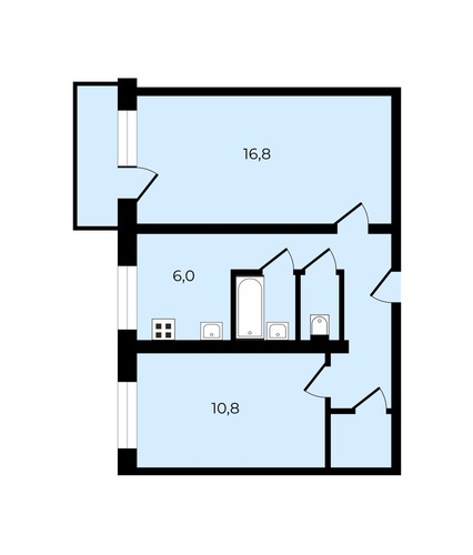 Кухня площадью 6 кв. м подойдёт для обустройства уютной обеденной зоны. Санузел раздельный, что удобно для повседневной жизни.
