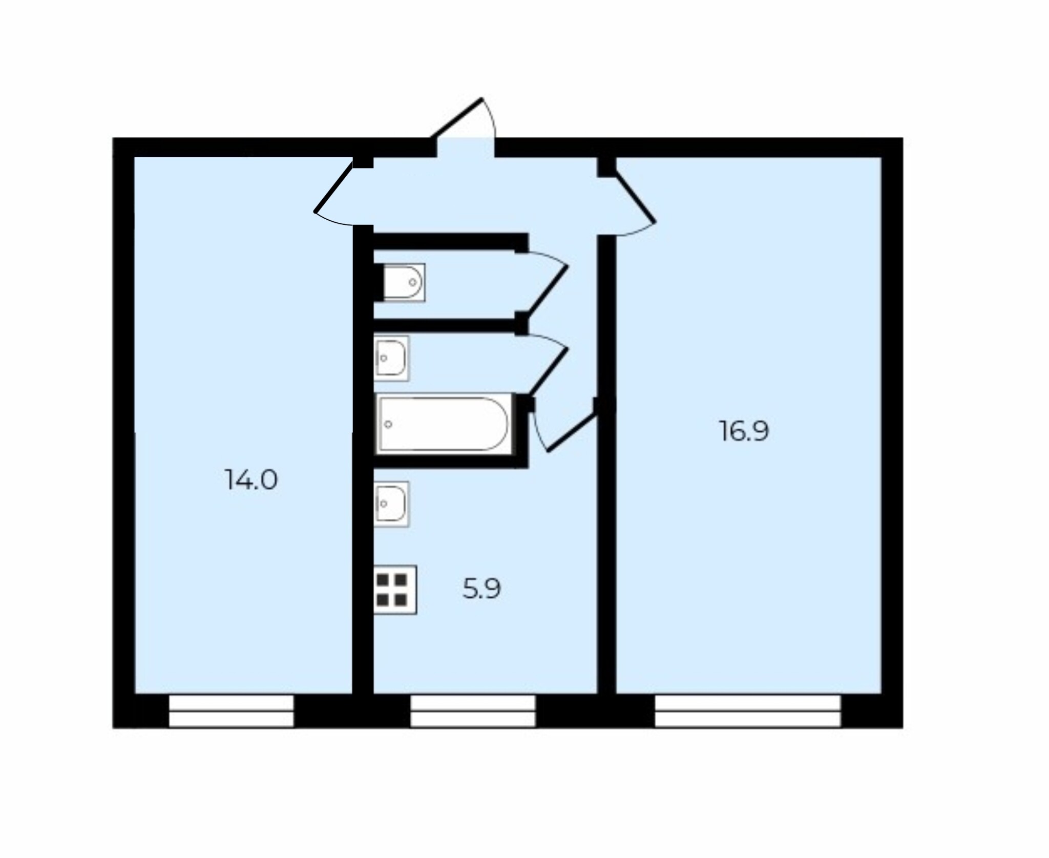 Просторные комнаты, раздельный санузел.