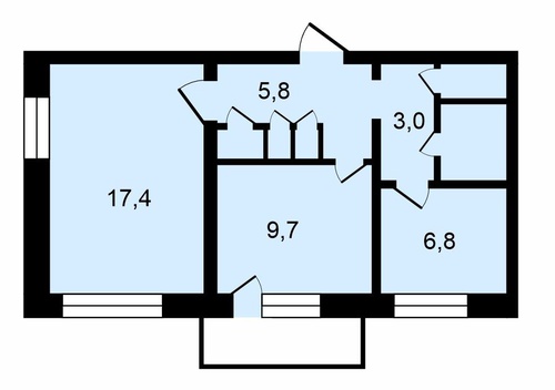 1. Функциональная планировка: две просторные изолированные комнаты правильной квадратной формы. В большой комнате два окна - Вы можете зонировать пространство.