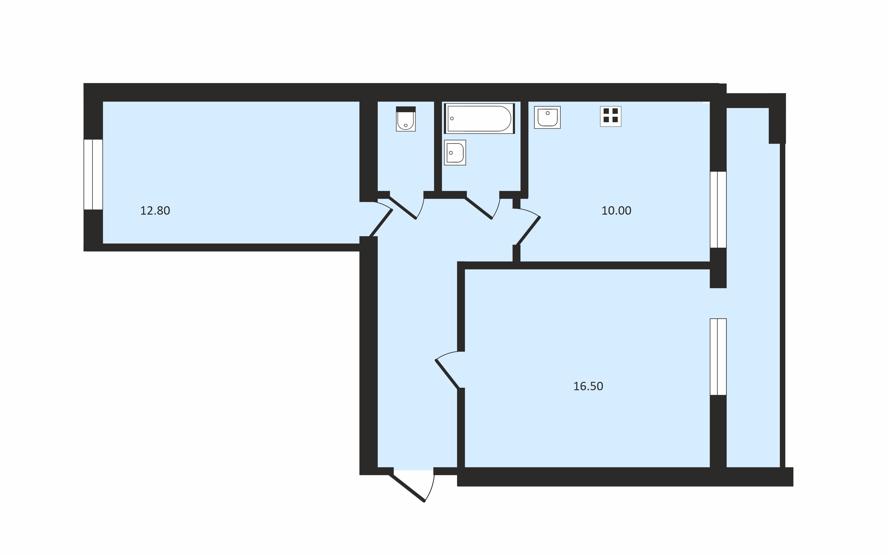 Квартира расположена на первом этаже десятиэтажного кирпичного дома 1998 года постройки. Общая площадь составляет 52,1 кв. м, из которых 29,3 кв. м — жилая площадь. Две комнаты площадью 12,8 кв. м и 16,5 кв. м предлагают достаточно места для комфортного размещения. Есть просторная кухня площадью 10 кв. м и один раздельный санузел.