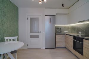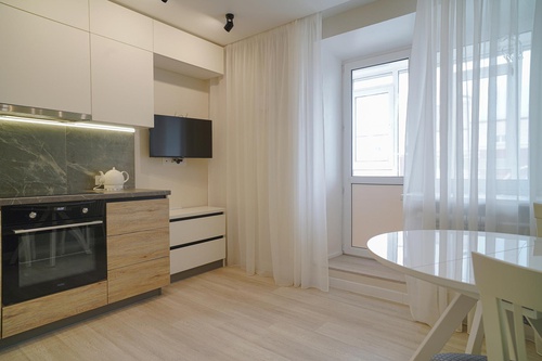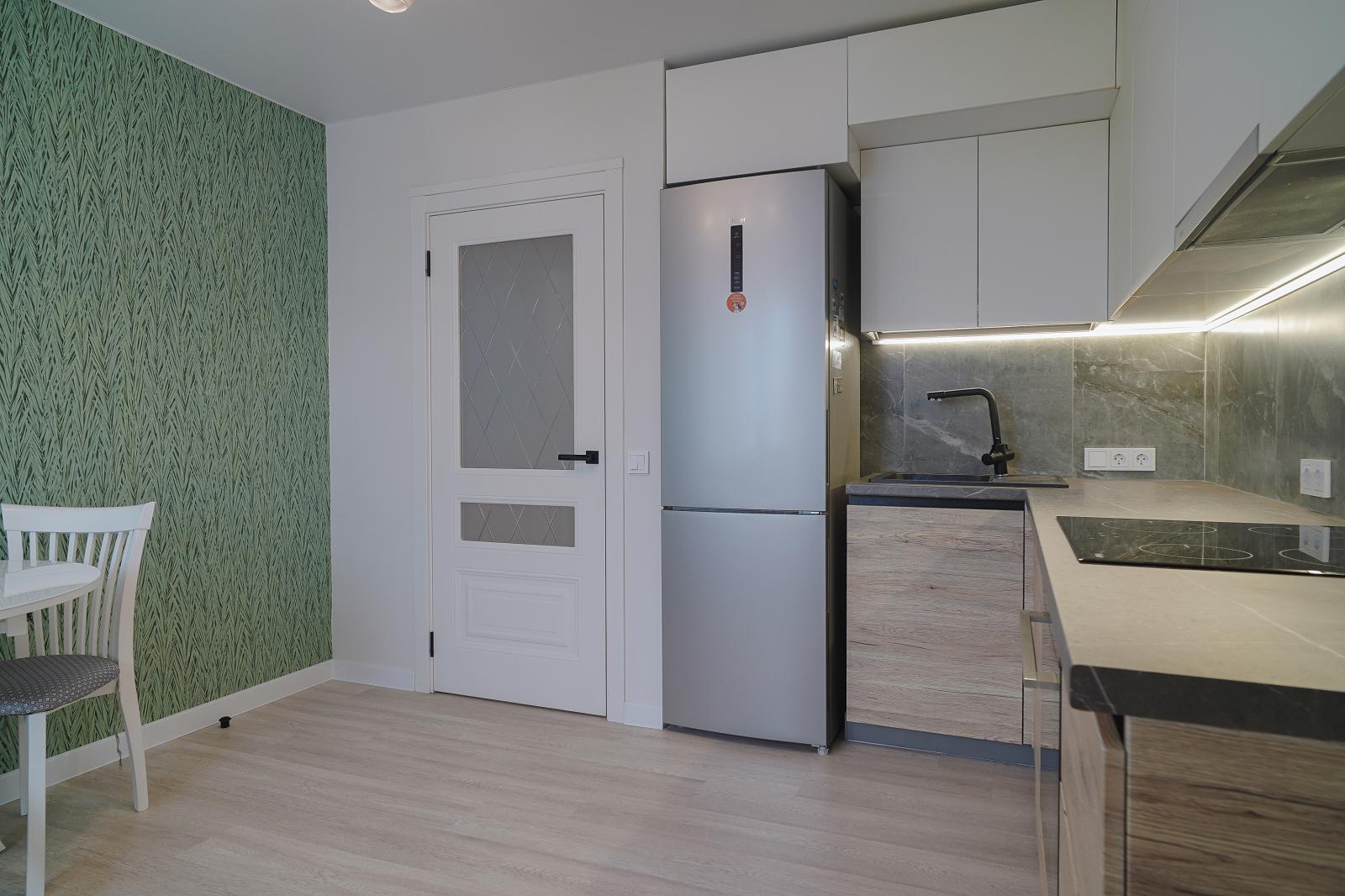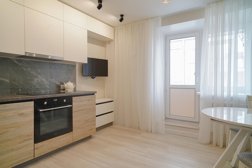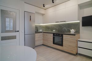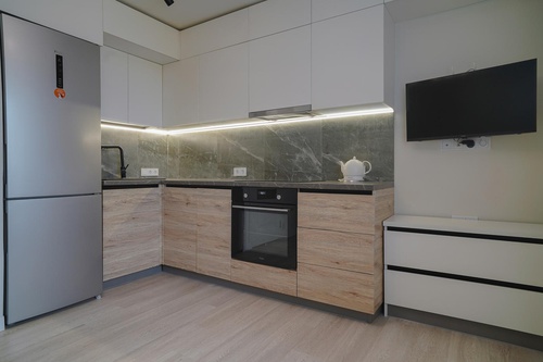 - В кухне установлен кухонный гарнитур, изготовленный по индивидуальному проекту МДФ фасады: