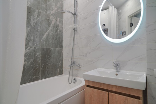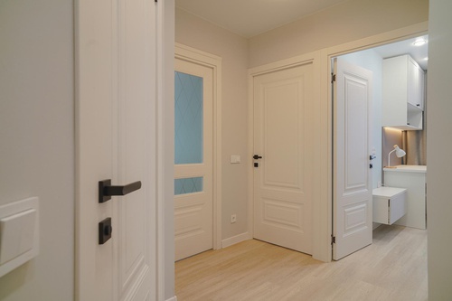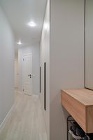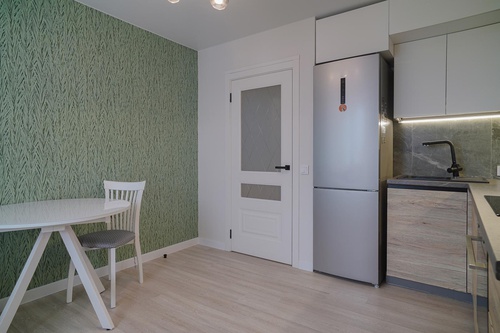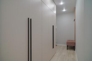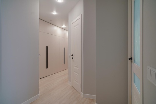 - На полу в прихожей, коридоре, кухне и в сан – узле – керамогранит, в комнатах – кварцвинил.
