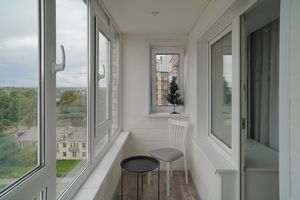 - Выполнено полное благоустройство лоджии: проведено электричество, пол – ламинат, качественное пластиковое остекление.
