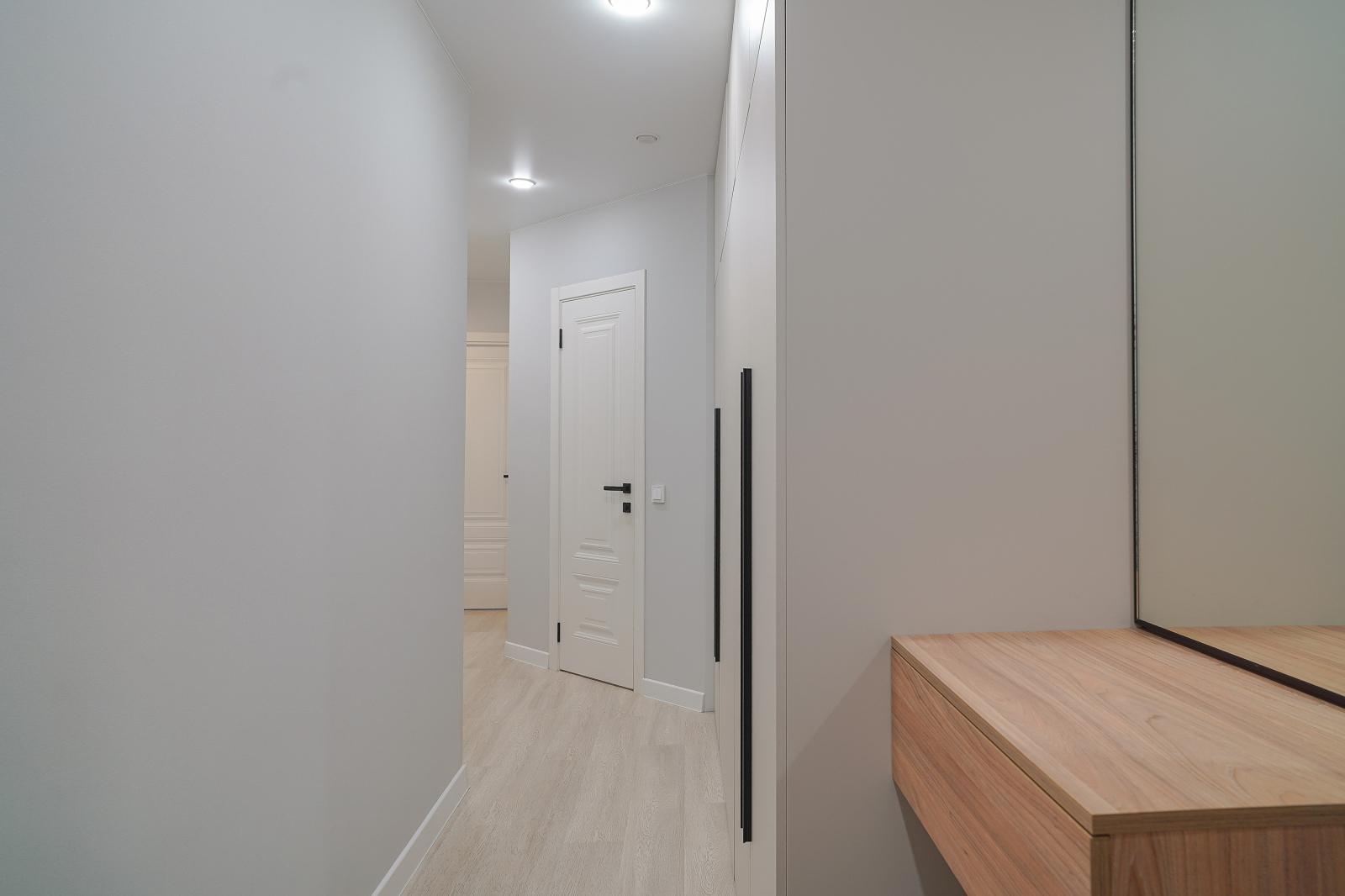 Ремонт выполнен в приятных светлых тонах в стиле современная нео-классика.