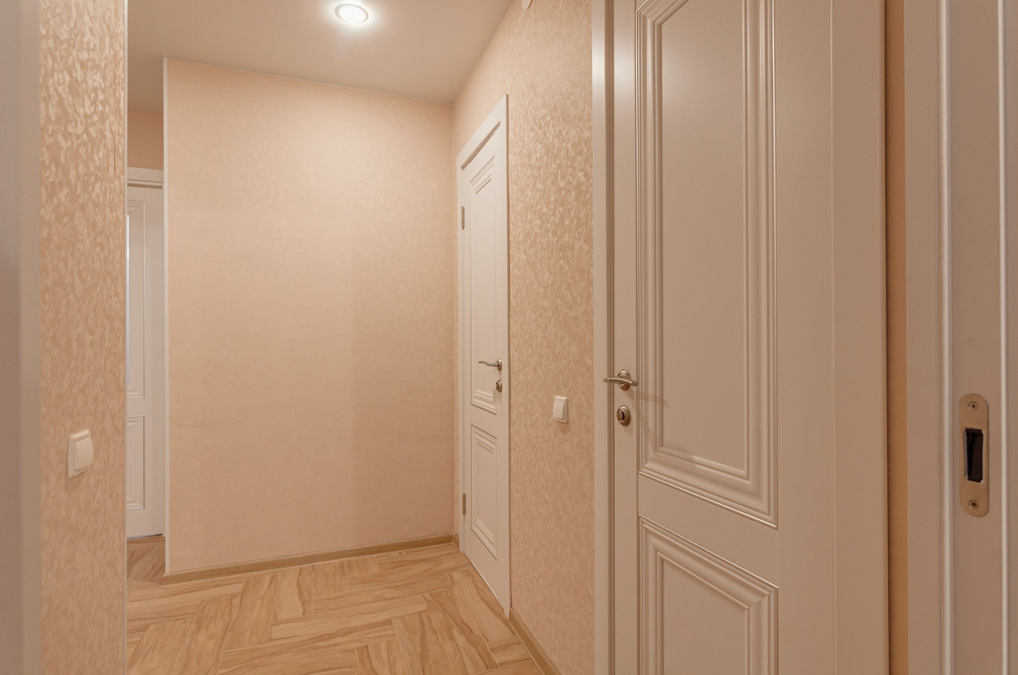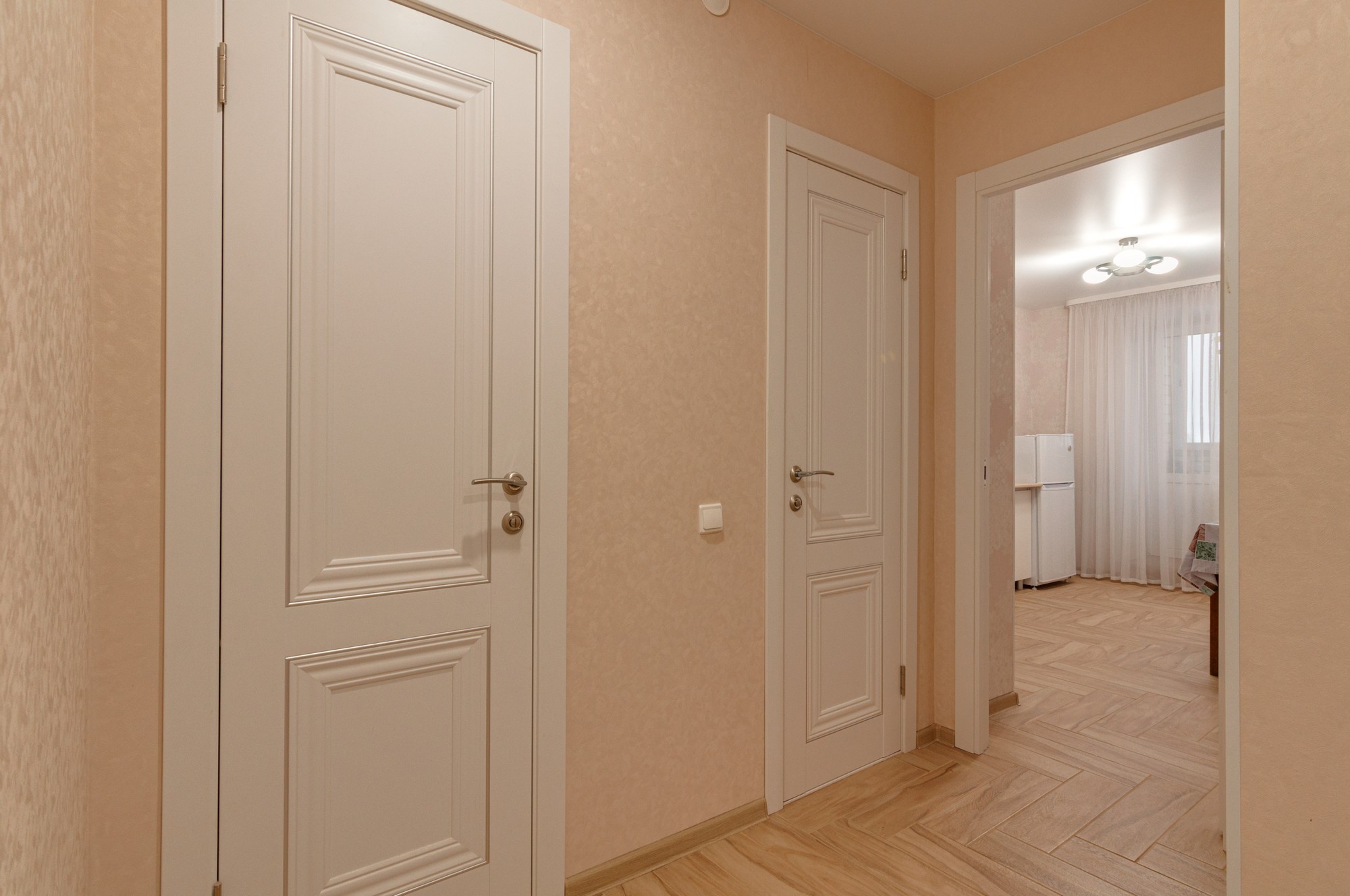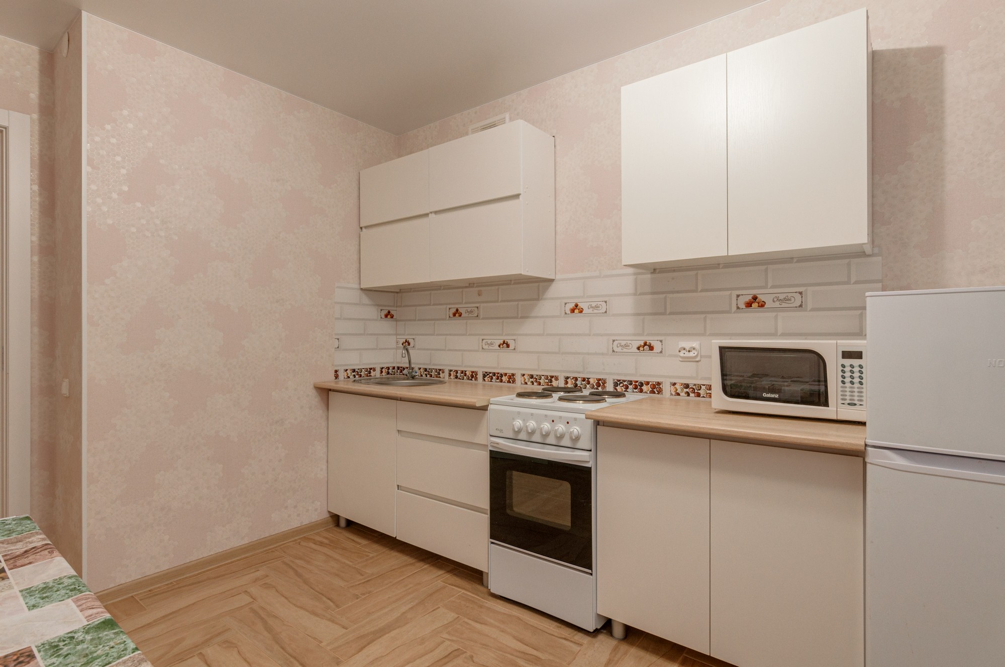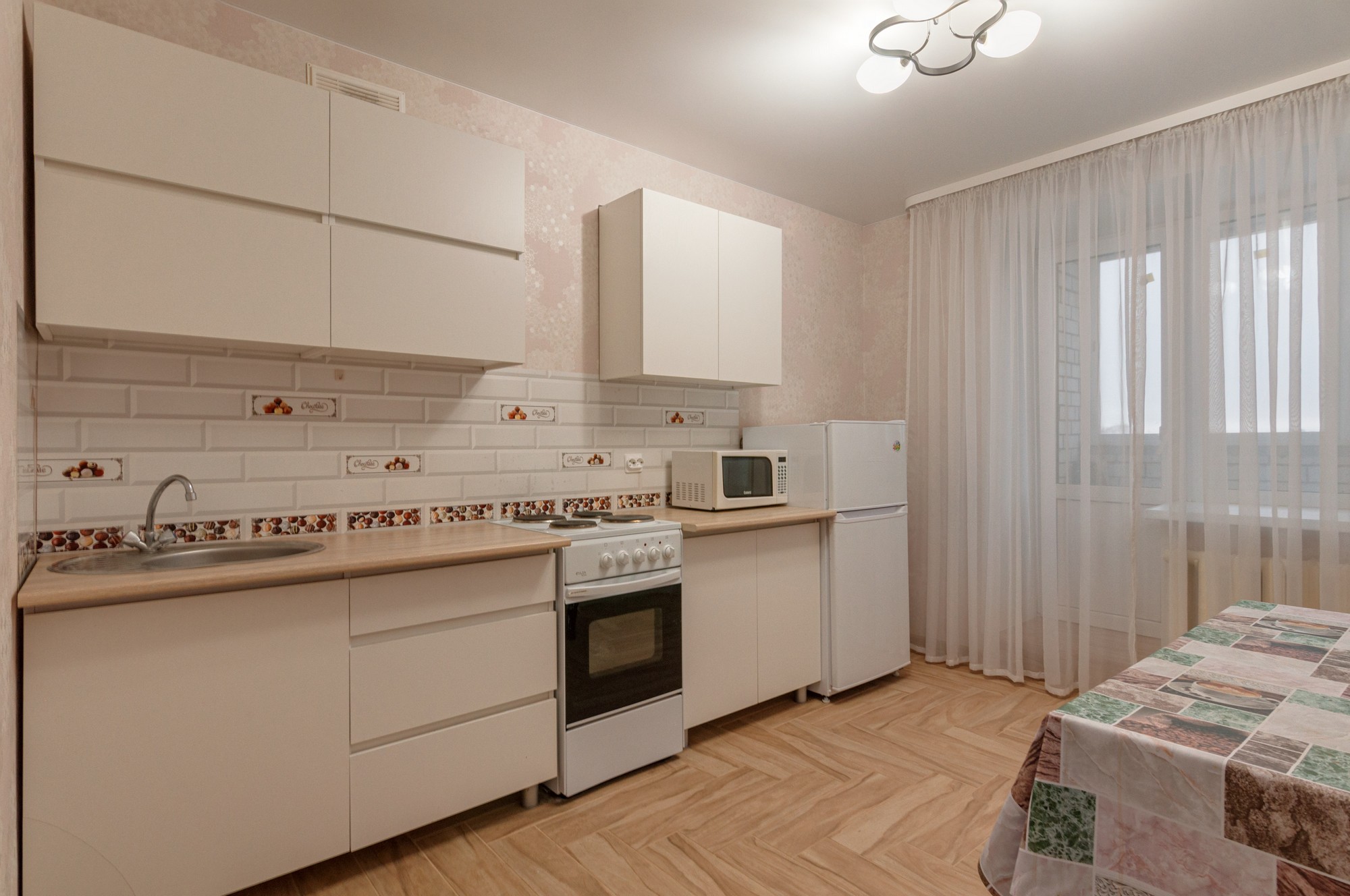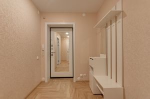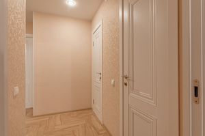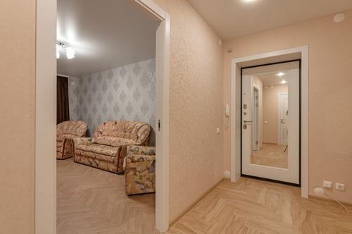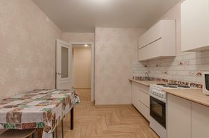 Квартира расположена на 6 этаже 9-этажного кирпичного дома. Общая площадь — 54,9 кв. м, жилая — 31,02 кв. м, площадь кухни — 11 кв. м. Высота потолков — 2,6 м. В квартире выполнен свежий евроремонт, комнаты изолированы, окна выходят на две стороны.