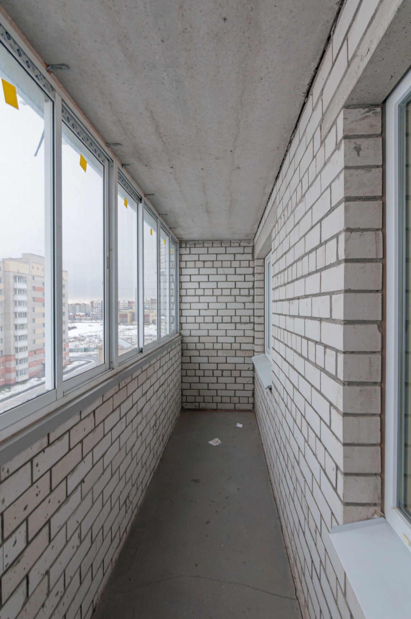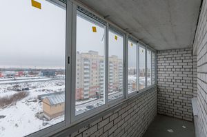Один из преимуществ этой квартиры — наличие большой лоджии, где можно обустроить зону отдыха или хранения.