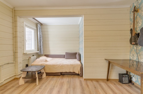 Ванная комната облицована панелями, а также имеется отдельный туалет.