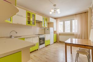 Квартира имеет отличное расположение, рядом с домом находятся супермаркеты, кафе, аптеки и общественный транспорт.
